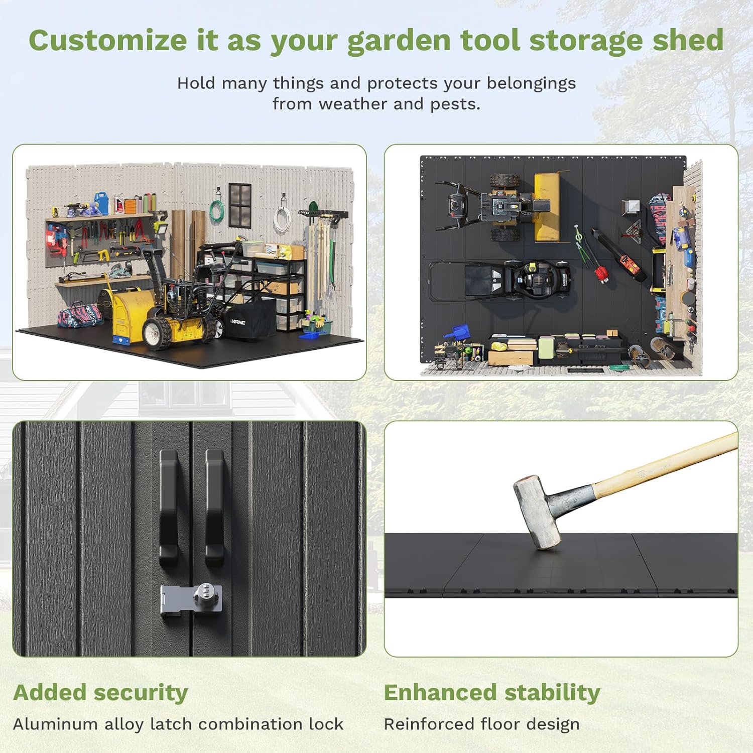 - Recyclable And Durable Material: Made from recyclable materials, this storage shed is designed to be both lightweight and durable. Beige wall and gray roof are more beautiful and fashionable.