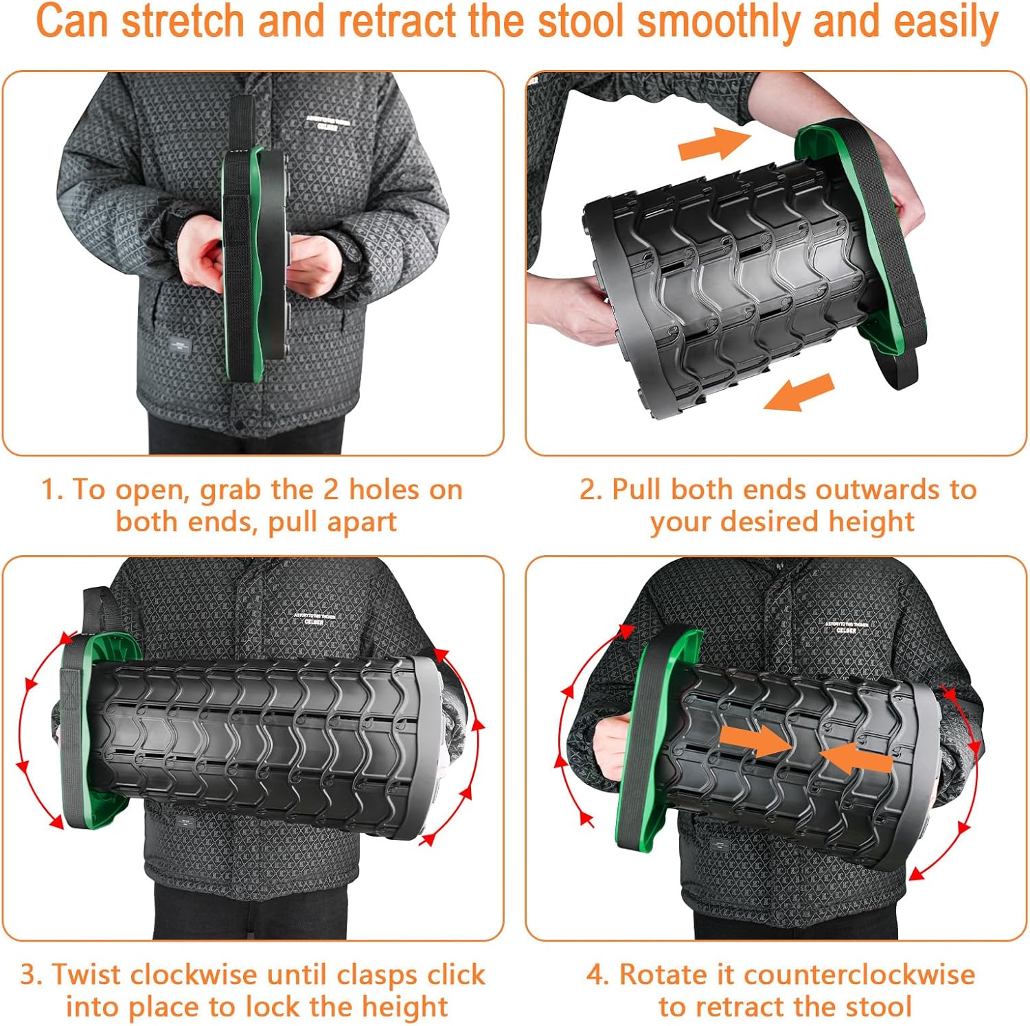 - PORTABLE & LIGHTWEIGHT: This telescopic stool is only 2.54 pounds with 9.84 inches/250mm. The adjustable strap makes the stool easy to carry in your hand or hanging on your shoulder. Perfect to use for camping, fishing, hiking, hunting, picnic, BBQ. Also can be used in living room, bedroom, bathroom etc