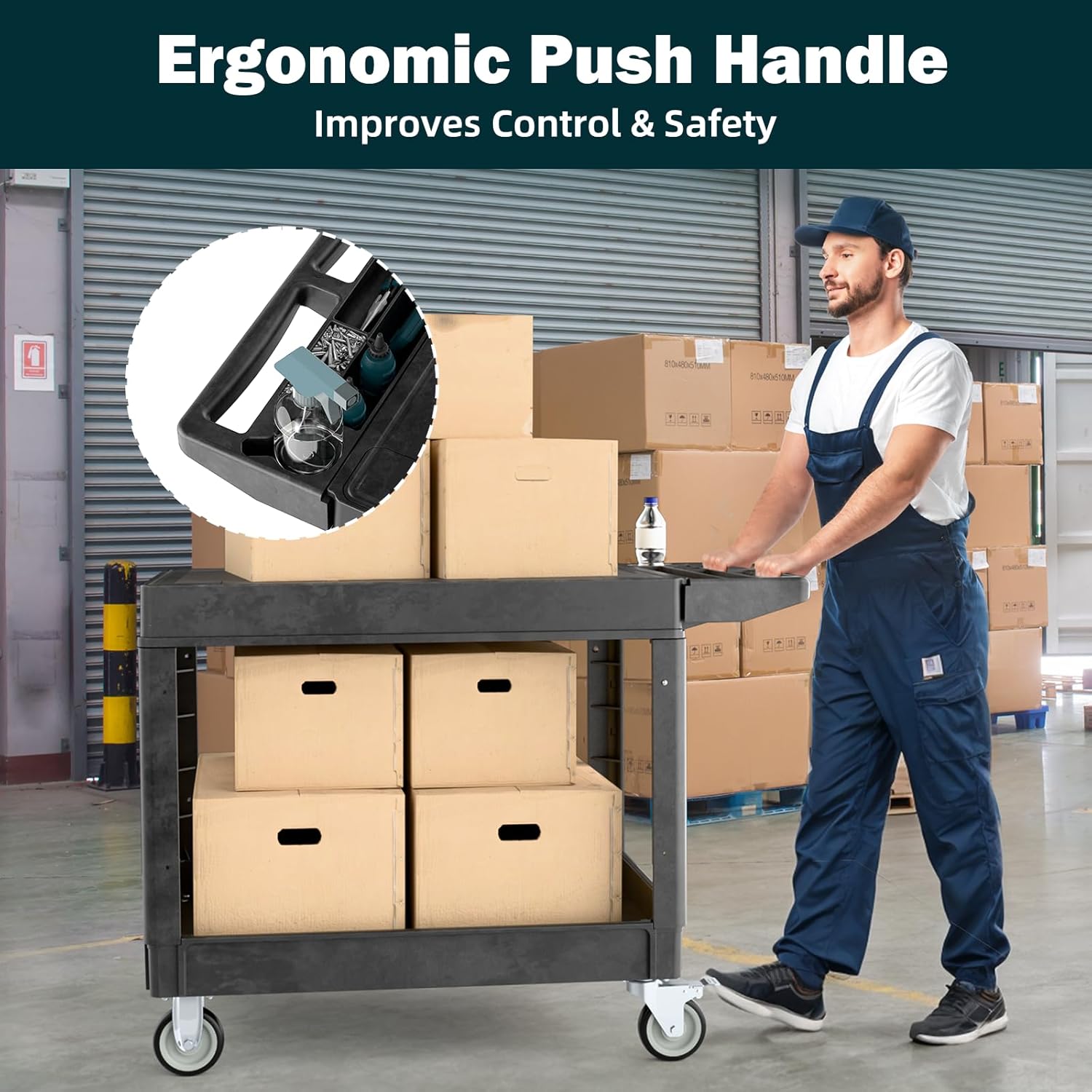 - [Powerful Load-Bearing Capacity] This flat-top multi-purpose cart features a strong 550 lbs load capacity, making it easy to move heavy items with confidence. Built for heavy-duty performance, it is suitable for warehouses, offices, workshops, and more. Please note: Plastic heavy-duty carts are primarily designed for transport and are not recommended for long-term storage of heavy machinery. Due to the natural flexibility of plastic, extended pressure may lead to deformation.