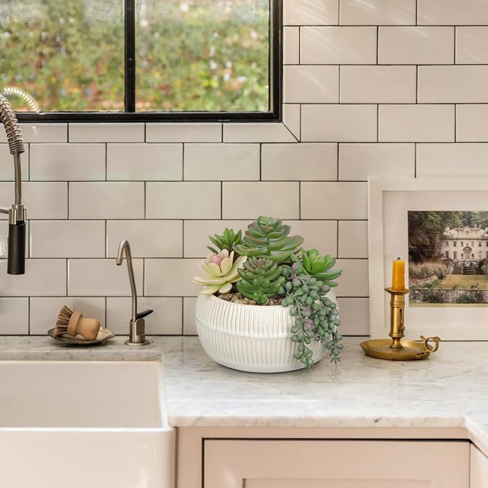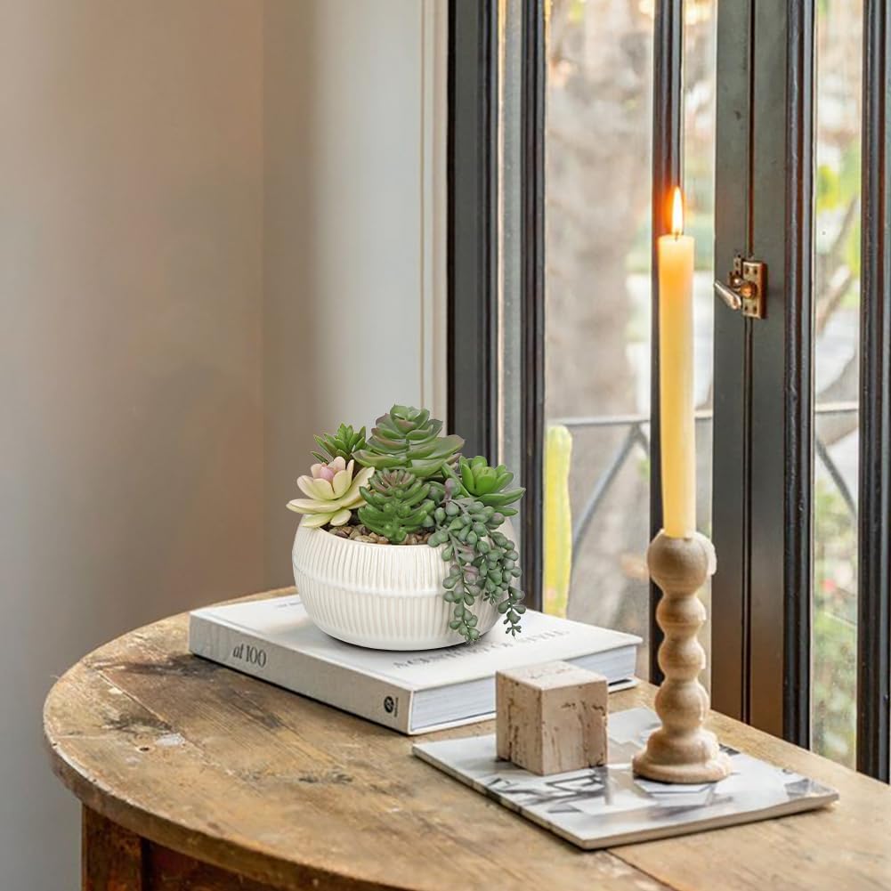- Versatile House Plant Decor: Measuring 5.5" tall overall with a 3.1" height and 5.5" diameter ceramic pot, this compact faux succulent fits perfectly on office desks, bathroom counters, and bookshelves. The ceramic pot provides stability while staying space-conscious - ideal for apartments, dorm rooms, or as a charming kitchen windowsill accent
