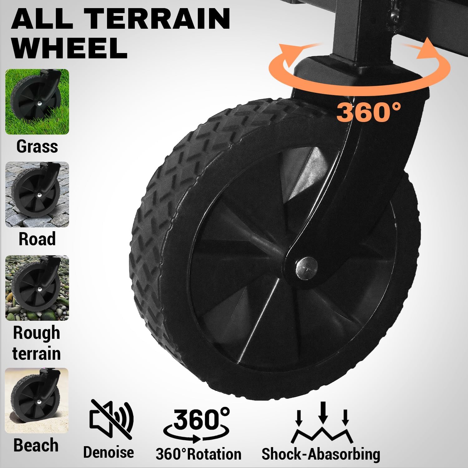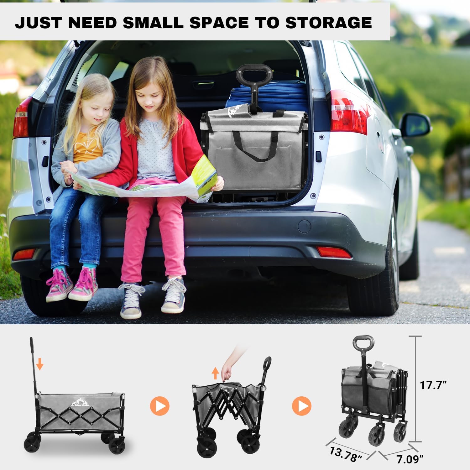 Collapsible Wagon 352LBS Capacity, Foldable Large Carts, Heavy Duty Outdoor Folding Cart with All-Terrain Wheels, Utility Garden Beach Wagon with Storage Bag Green