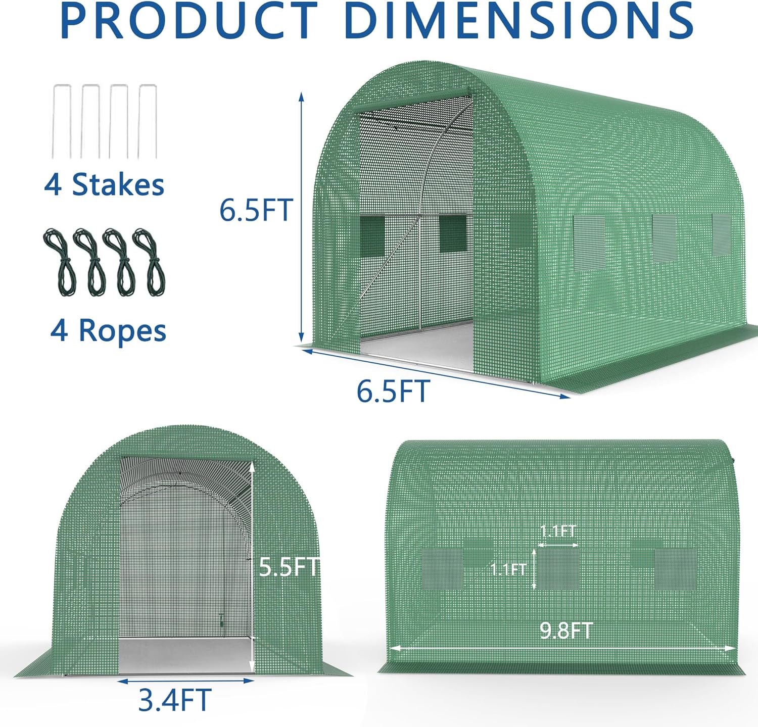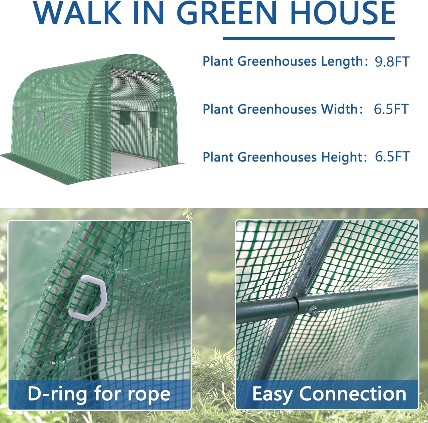9.8*6.5*6.5FT Heavy Duty Greenhouse for Outdoors, Large Walk-in Green House with High Tunnel PE Cover & Irrigation Garden Sprinkler System for Winter, Green
