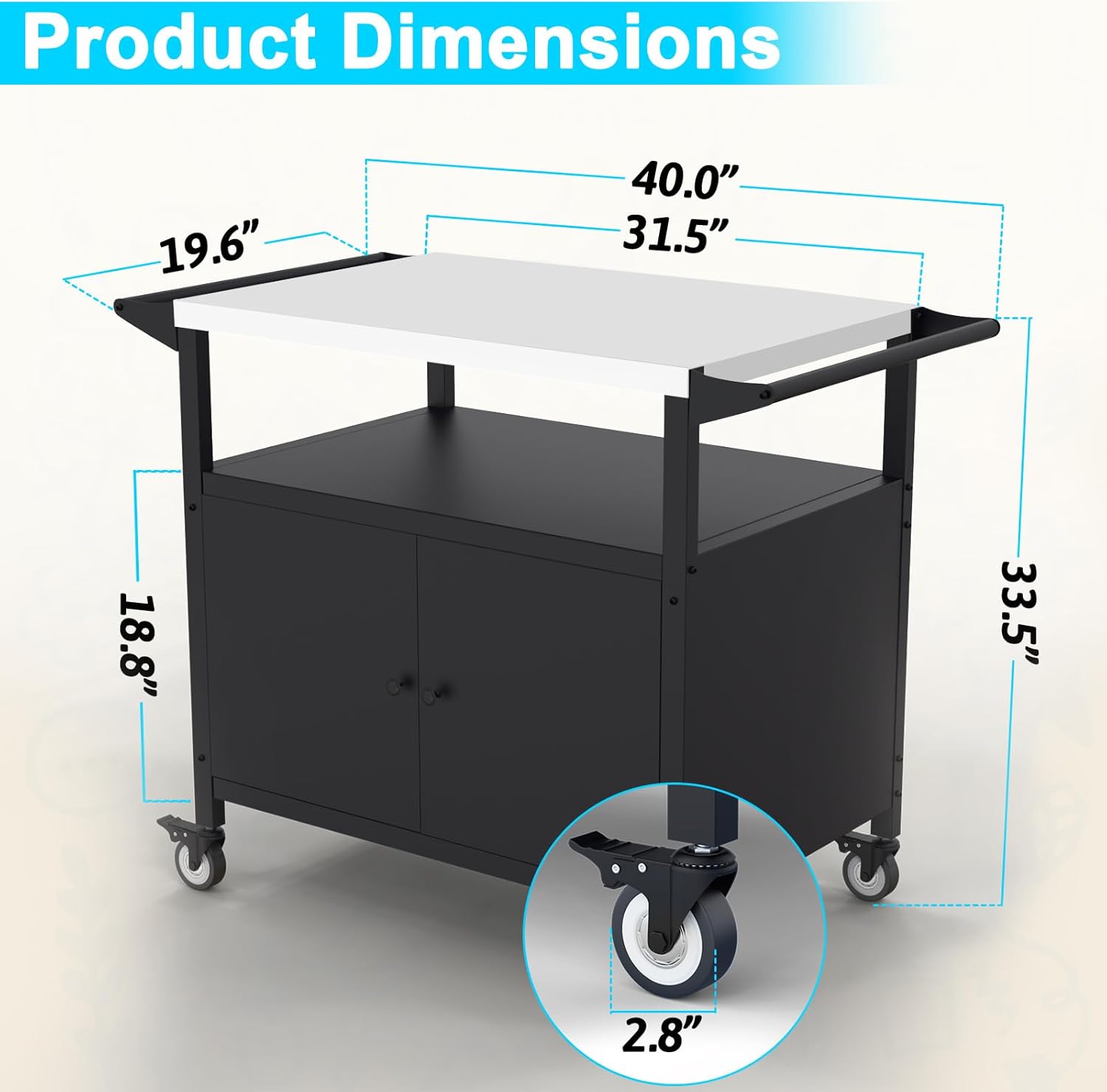 - Product Dimensions : 40"D x 19.6"W x 33.5"H
