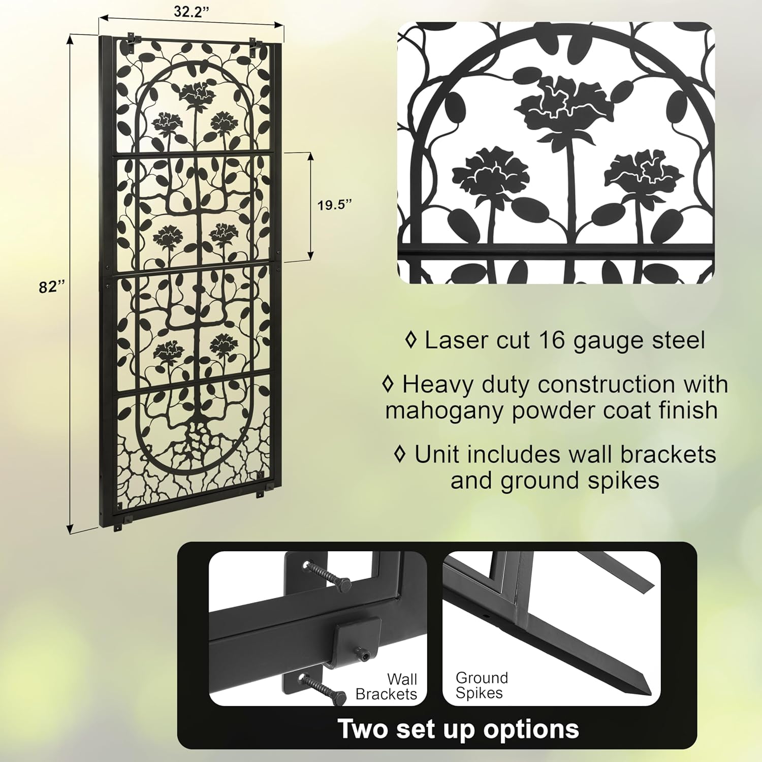 H Potter Trellis Privacy Screen (Wall Trellis Black w Mounting Brackets)