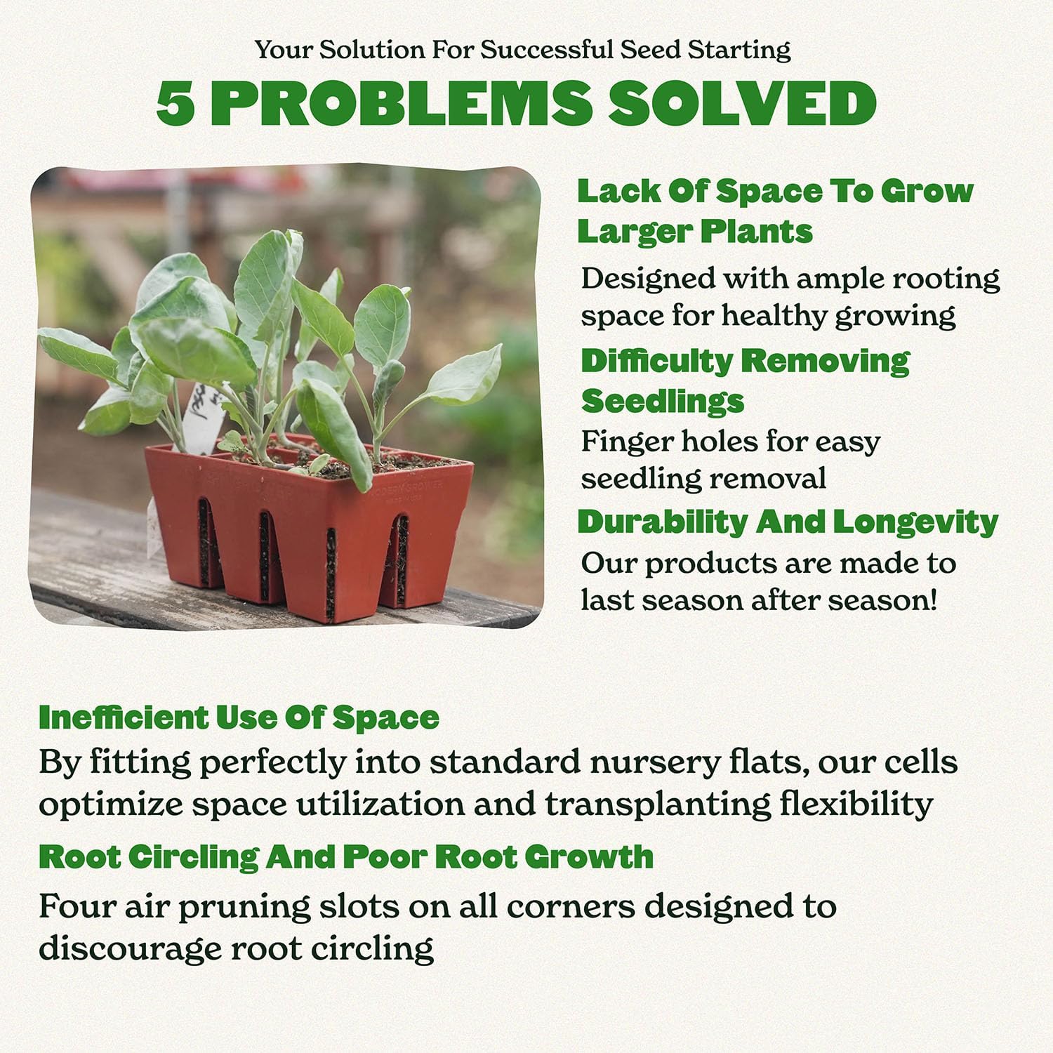 - Unbreakable & Eco-Friendly – 100% Recycled Plastic: Made from 100% recycled, UV-resistant plastic, our 6-cell trays (72-pack) are built for lifetime use. Each cell measures L 1 9/16" x W 1 9/16" x H 2 1/4", ensuring strong, reusable, and sustainable seed-starting.