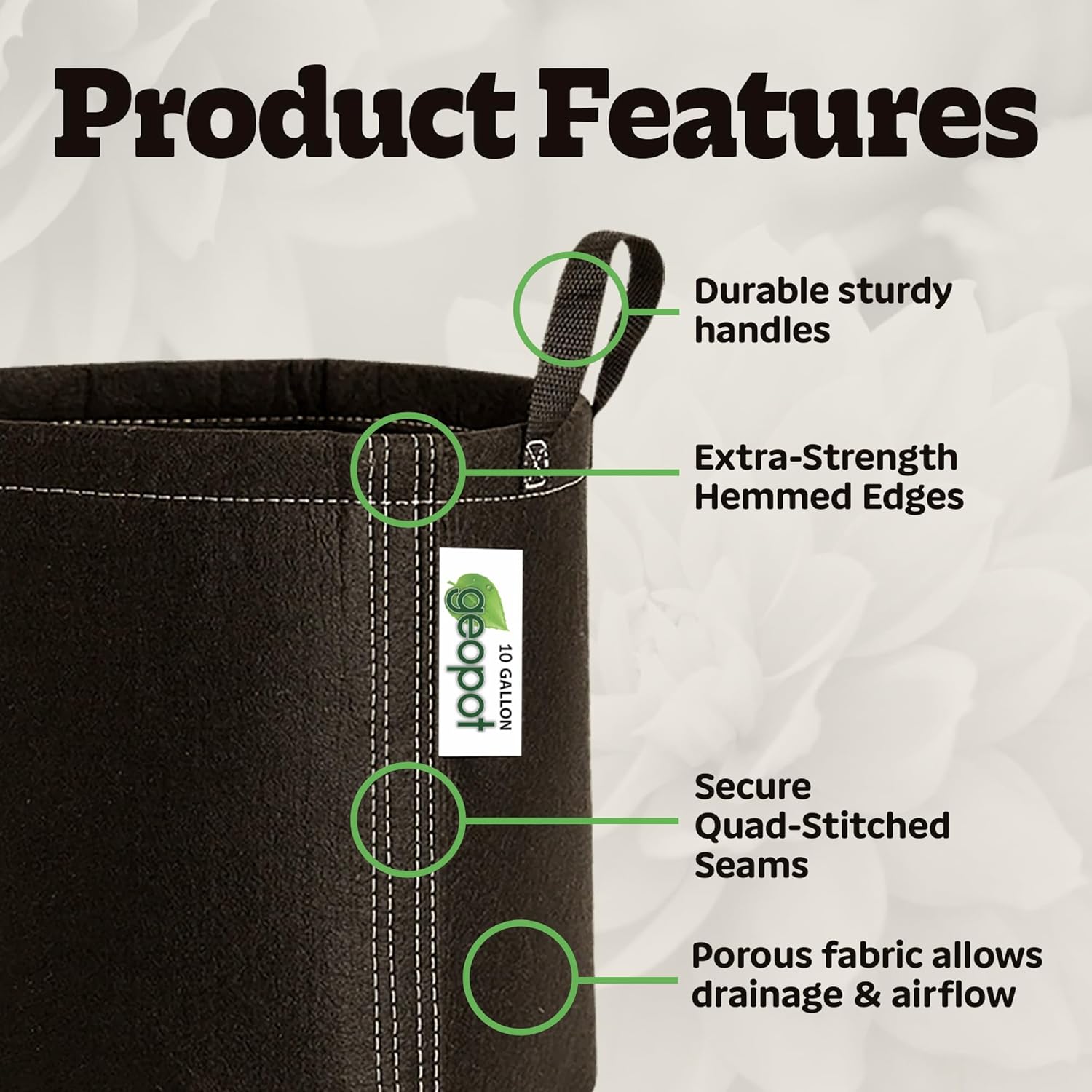 10 Gallon Fabric Grow Bags with Handles for Vegetables, Houseplants, Herbs & Flowers |5-Pack| Fabric Pots for Outdoors and Indoors, Aerated Fabric Grow Bags