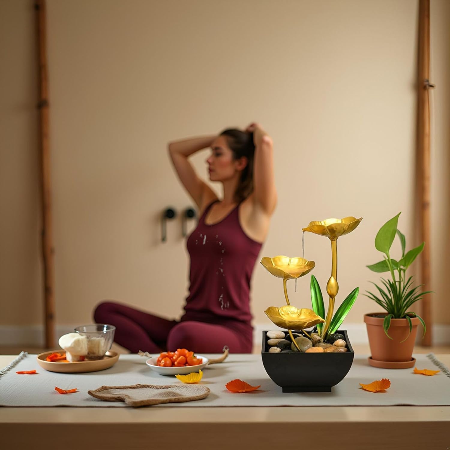 Gold Tabletop Water Fountain, Desktop Waterfall, Indoor Lotus Desktop Decorative Fountain, Home Bathroom Bedroom Decor.