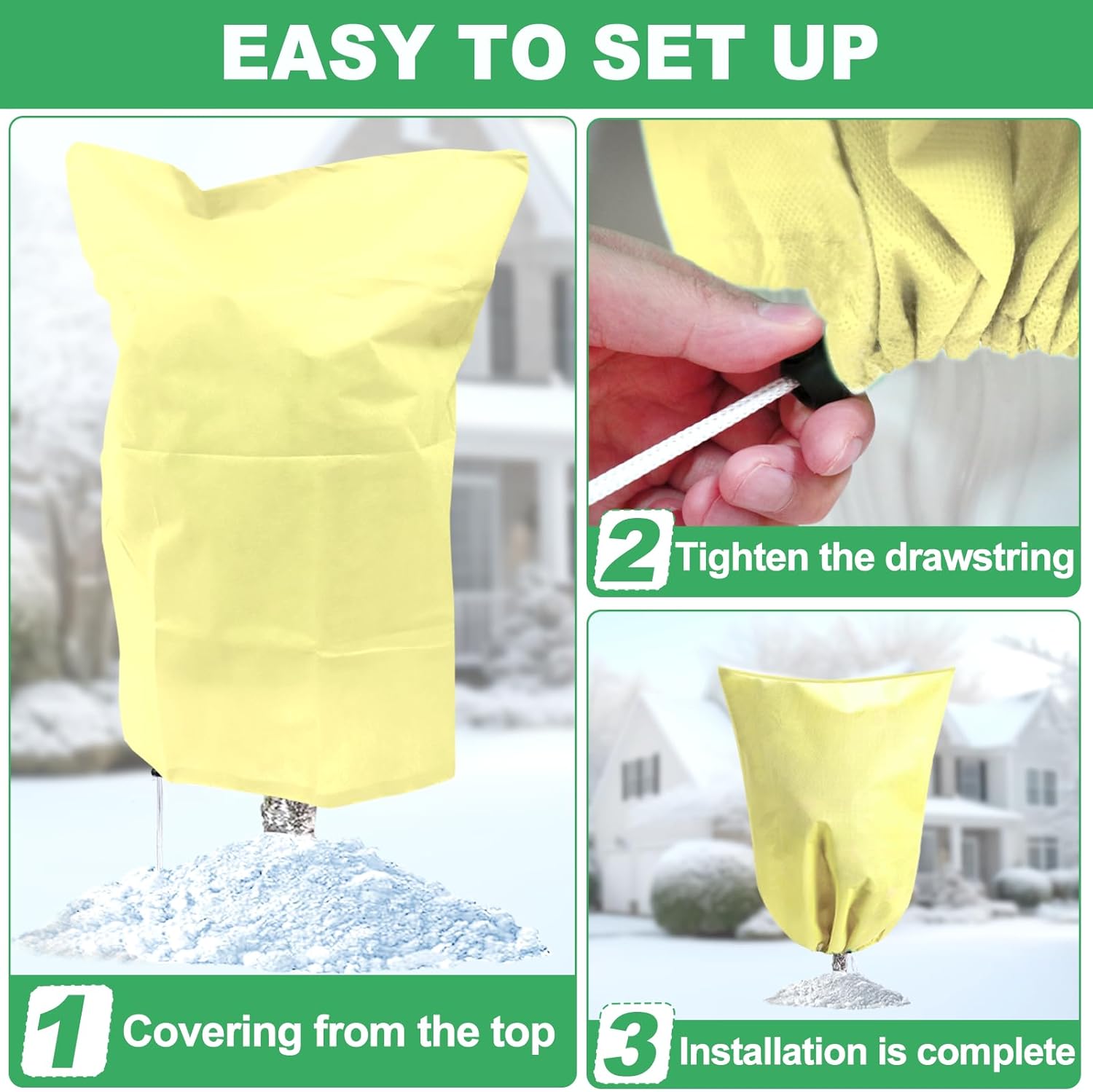 - Frost Cover With Drawstring: The freeze protection design of the tree coves bag uses an easy-to-use drawstring to prevent damage to plants from cold ground winds.