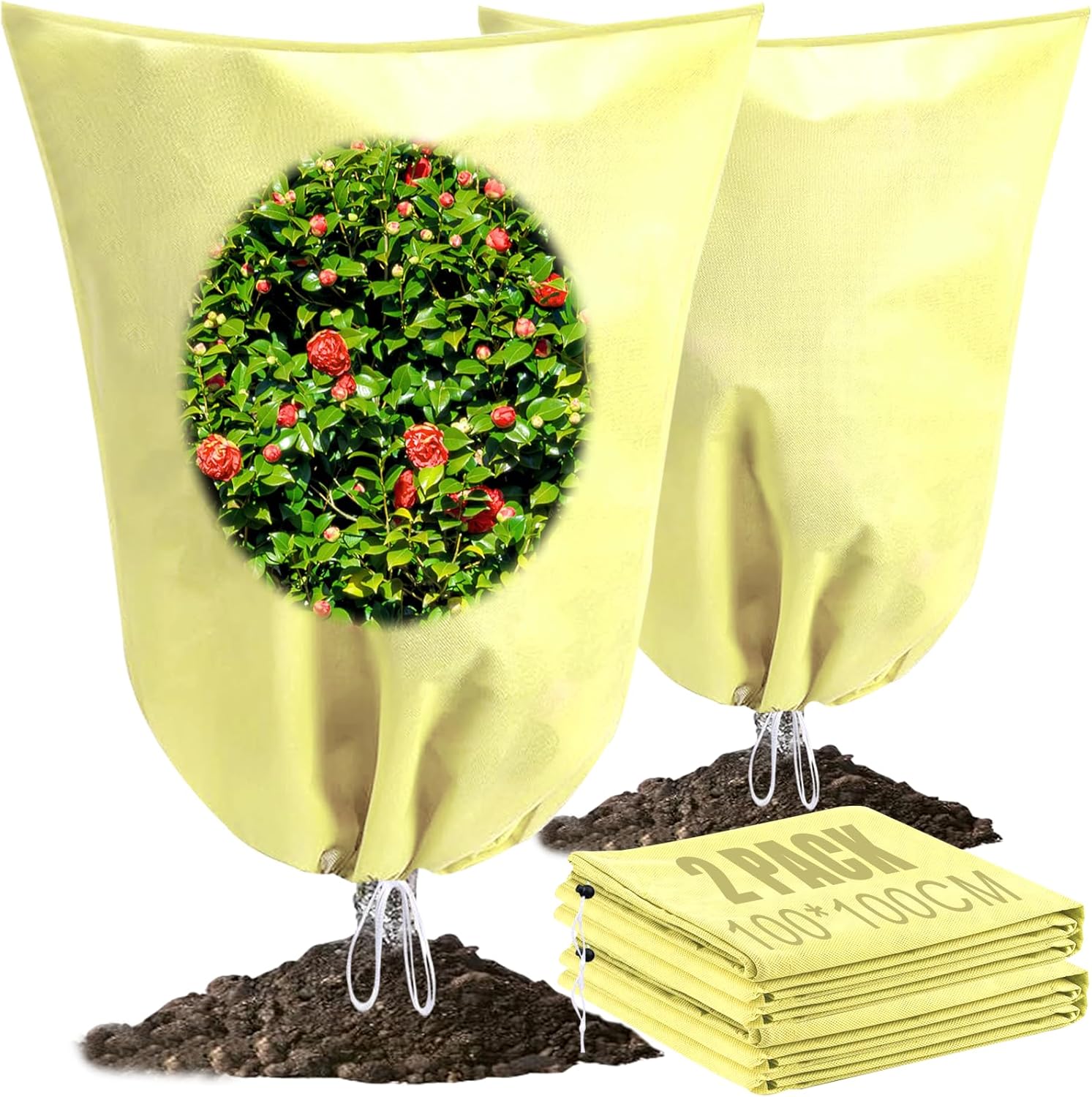 - Plant Covers: The package includes 2Pcs plant protection bags. The flat size of the cover is 39.3" x 39.3".