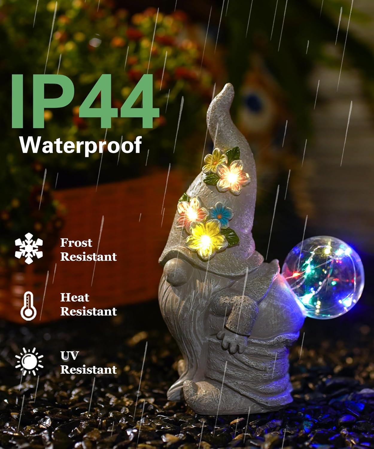 Funny Garden Gnome Statue with Lights, Outdoor Sculpture Decor for Home Yard Lawn Porch Balcony Patio,Gardening Gifts for Women Mom Grandma