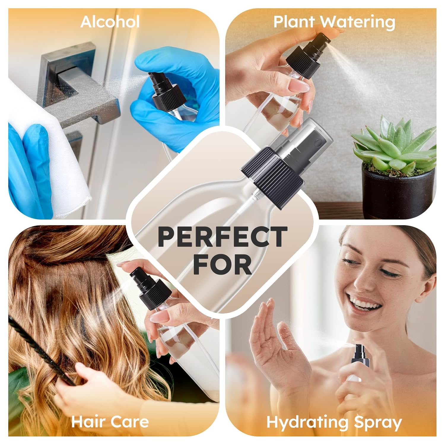 - Multifunctional Squirt Bottle: The mister spray bottles can fill with whatever liquid you want. Perfect for water spray bottle for hair, homemade cleaning solutions, window Cleaners Aromatherapy Facial Hydration Watering Flowers Hair Care, and so on.
