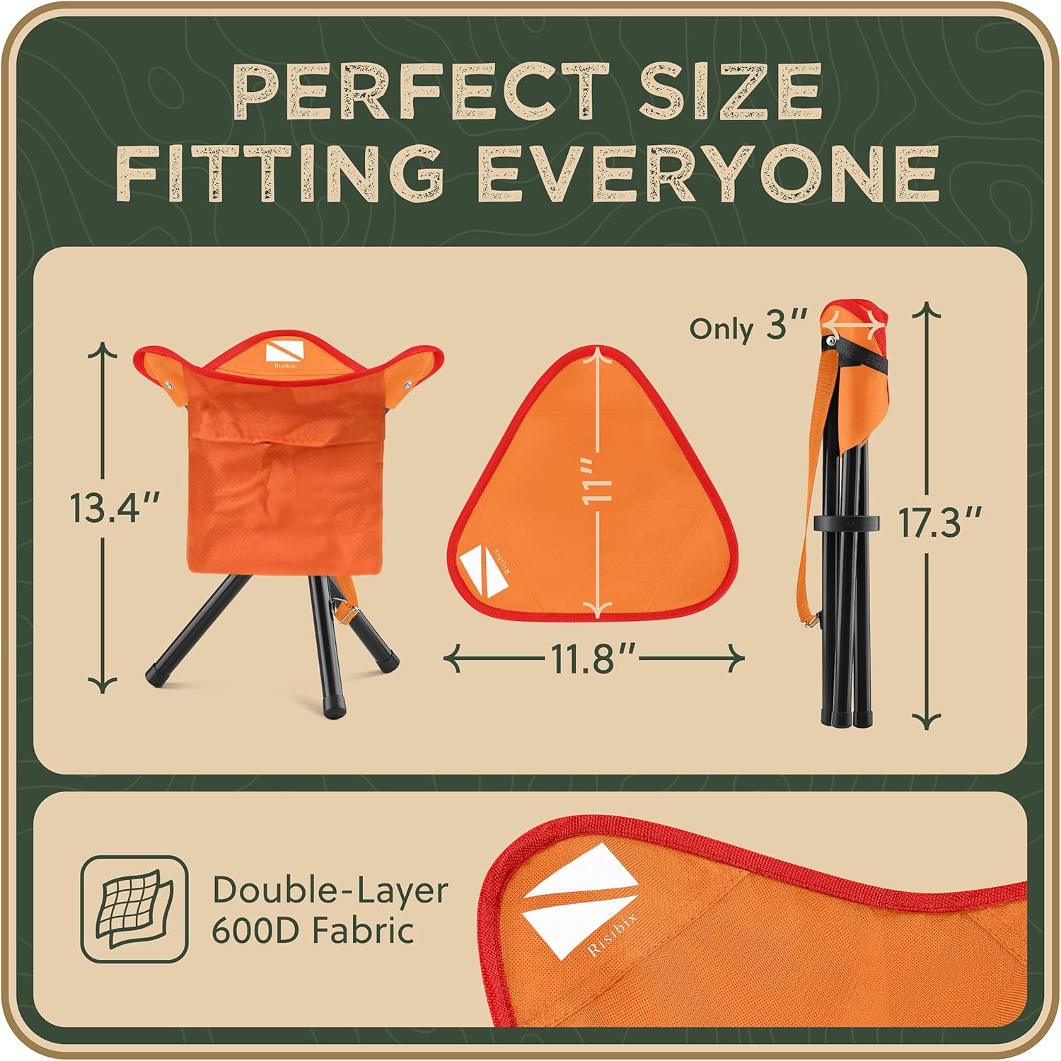 - â—Ź COMPACT CONVENIENCE: This petite tripod seat unfolds to a comfortable height ideal for quick rests during hikes. The 3 legged stool small stature ensures easy transport with comfort. Camping stools can fit seamlessly into your outdoor adventures