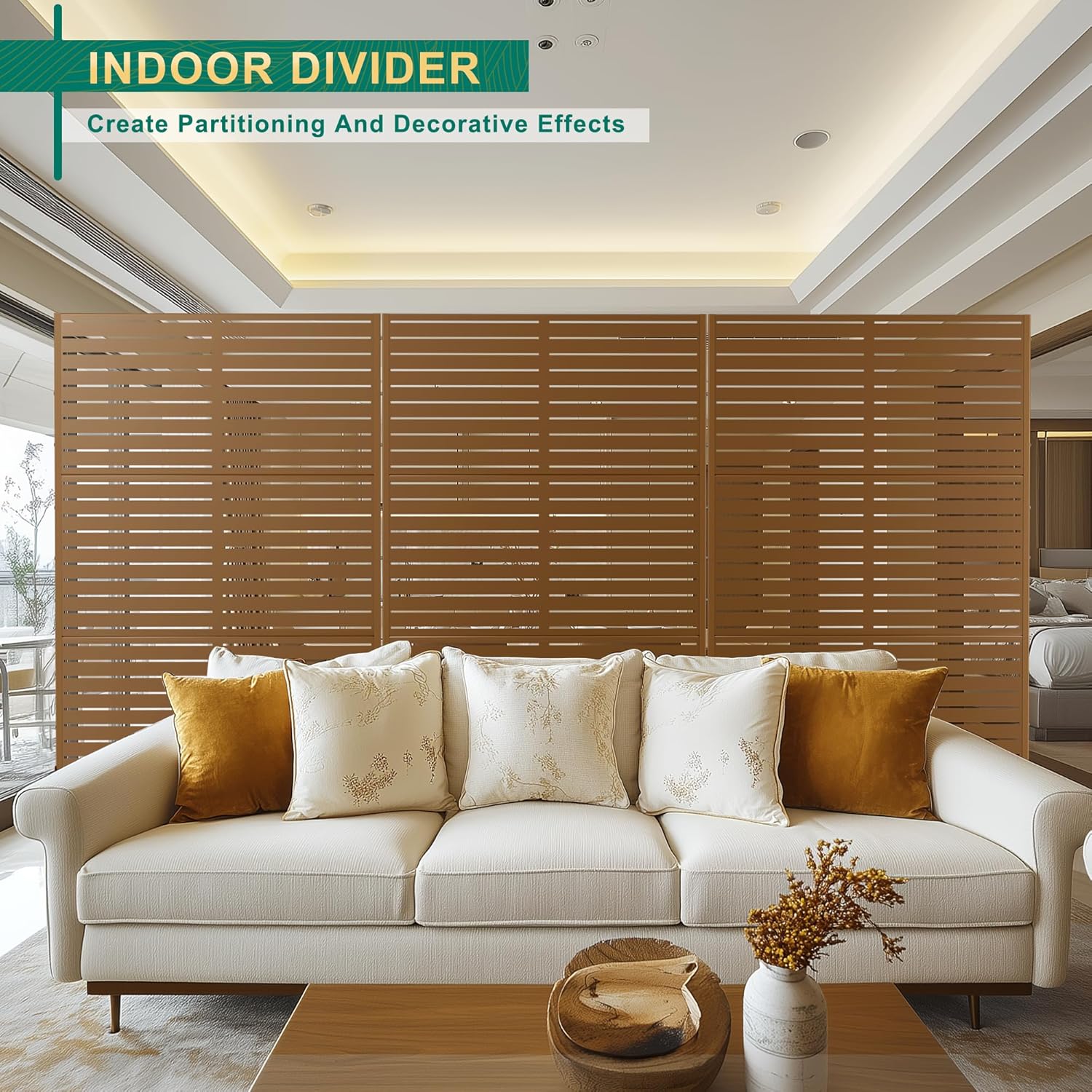 - Functional Decor: Beyond its primary function as a privacy barrier, this outdoor screen serves as an artistic decorative element. The intricate and elegant design elevates the visual appeal of your outdoor decor, turning an ordinary space into a chic and inviting retreat. Its aesthetic versatility makes it a perfect addition to any outdoor setting, where it can complement a variety of styles and themes.