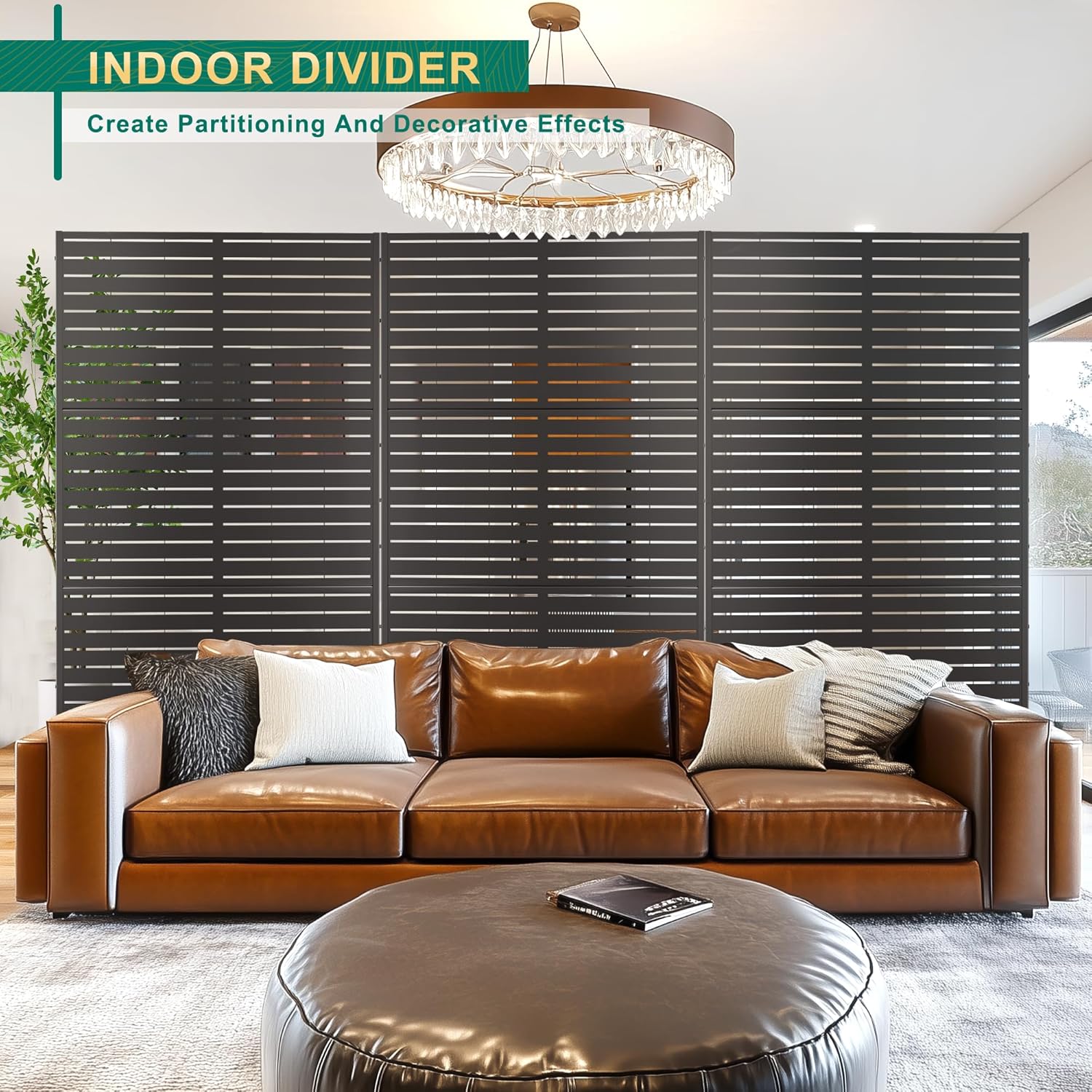 - Durable Metal Construction: Expertly crafted from premium-quality materials, this outdoor privacy screen is engineered to withstand the harshest outdoor conditions. The robust metal construction is resistant to rust, corrosion, and fading, ensuring that it remains a reliable and durable solution for maintaining privacy in your outdoor living space over the years. Its sturdy build guarantees long-lasting performance, even in extreme weather.