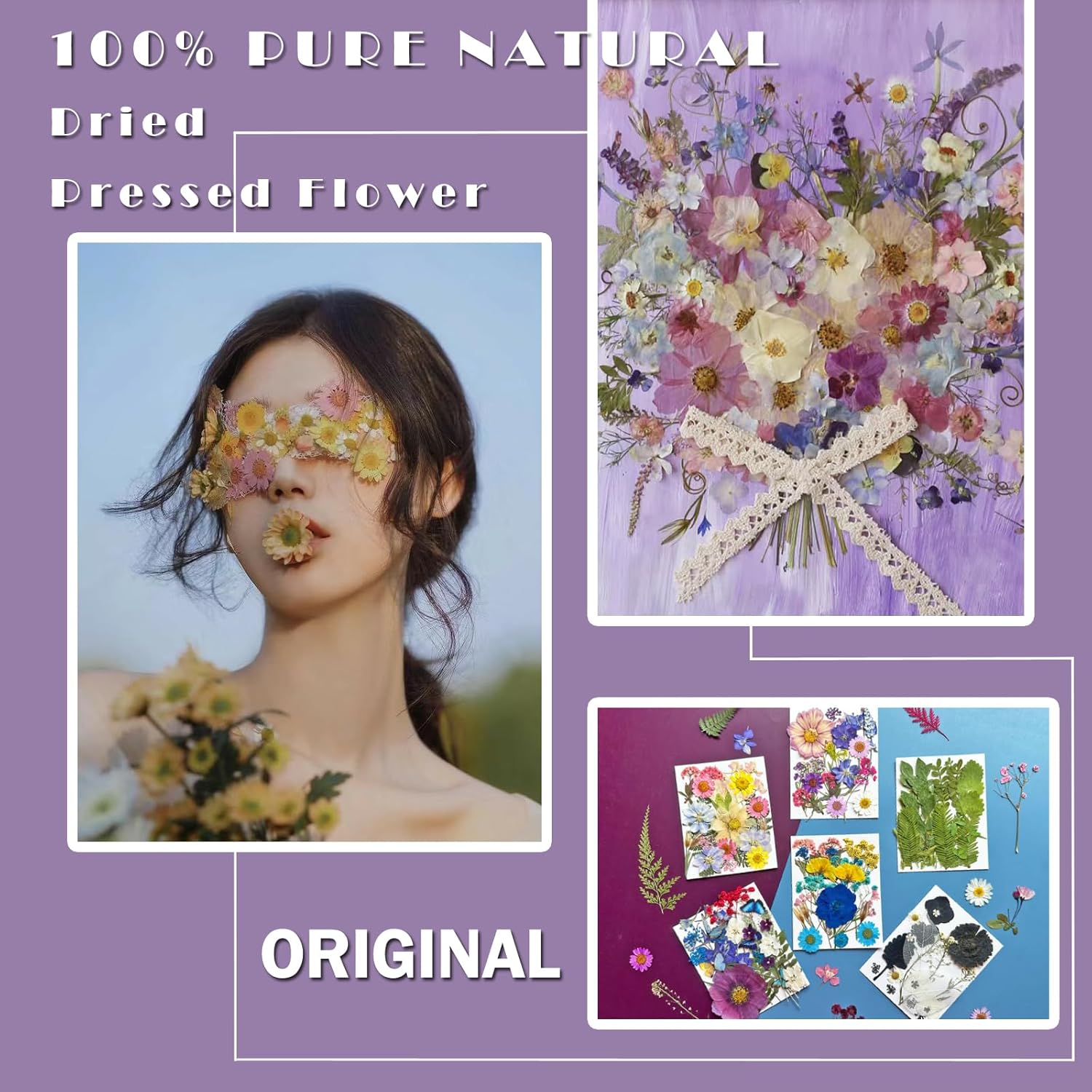 - Beautiful Natural Dried Flowers: Our pressed dried flowers made from real natural flowers and leaves, We use special techniques to keep the dried flowers bright and long-lasting in color. Please don't place the flowers in direct sunlight, and use up as soon as possible after opening, otherwise they will be oxidized and discolored by moisture absorption.