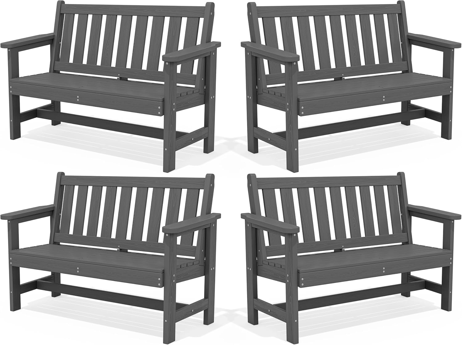 SERWALL Outdoor Bench, HDPE Outdoor Benches Weatherproof, 2-Person Garden Bench with 660 lbs Weight Capacity, Patio Benches for Outdoors, Garden, Porch, Backyard and Park, Grey, 4 Pack