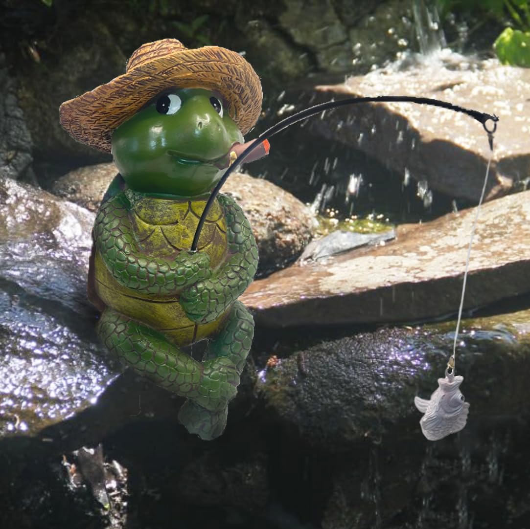 - Weatherproof and Durable: Made from high-quality resin, this weatherproof tortoise fishing statue is built to withstand wind, rain, sun, and snow, ensuring long-lasting beauty for all seasons in your garden, fish pond, or outdoor spaces.