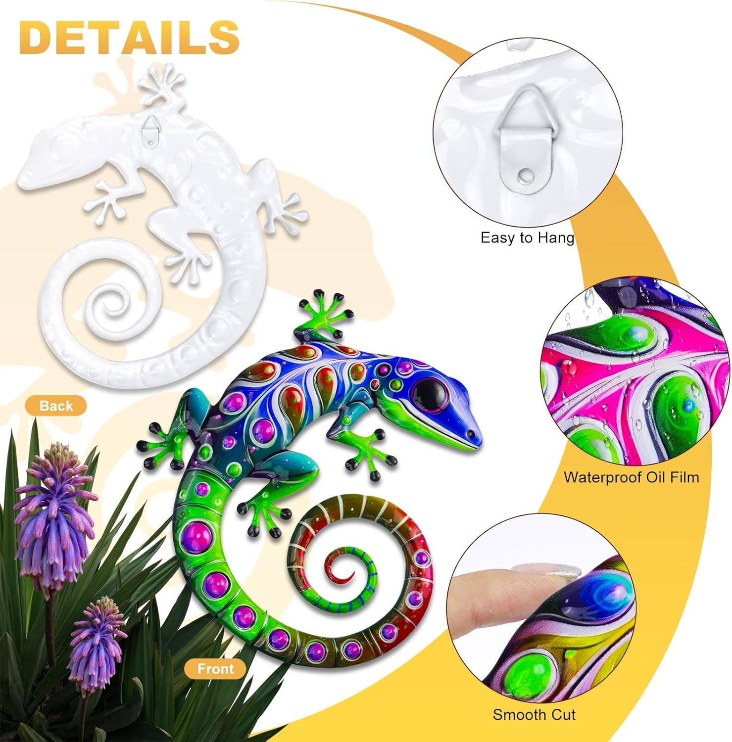 - Lifelike Lizard Wall Decor: Our outdoor decoration brand new pattern design is very realistic. Set of 4 colorful metal gecko wall art decors bring your fence, wall, garden, home to life with its plump body, vivid head and distinctive curly tail