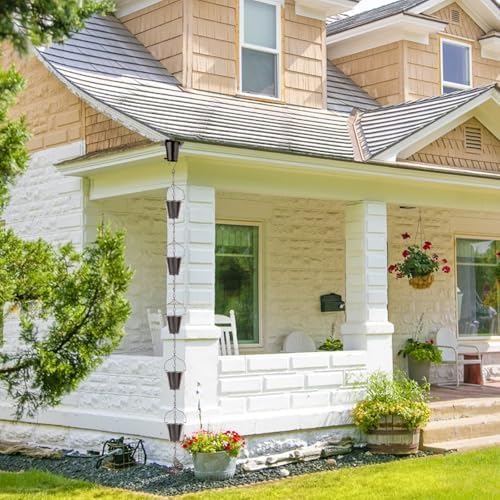 - Excellent Iron Spray Painting Carft : This rain chain set is made of high-quality iron, which is carefully polished and sanded through multiple processes, and then covered with high-quality rust-proof spray paint. This process not only enhances the aesthetics of the product, but also greatly enhances its weather resistance and corrosion resistance, ensuring that it stays bright and new for a long time and extends its service life even in humid .