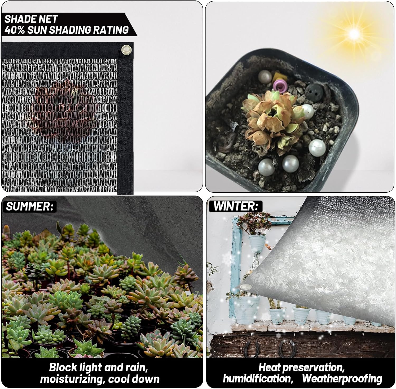 - 【40% Shading Rate】Made of 100% New High Density Polyethylene (HDPE) fabric material, has a shading rate up to 40% can avoiding direct sunlight while allowing free air circulation.