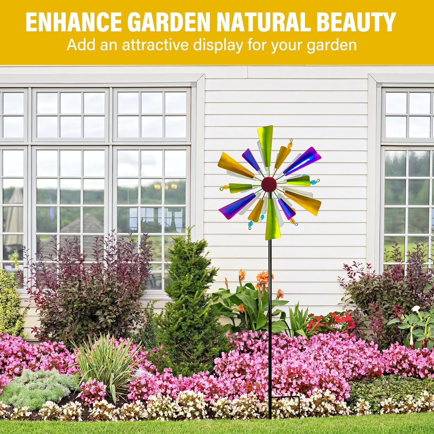 - 【Vibrant Design】Our garden and yard windmill features vivid patterns and natural elements, adding a touch of atmosphere to your outdoor space. The metal windmill rotates with the breeze, creating a serene and relaxing ambiance that helps relieve stress and brings vitality to your everyday life.