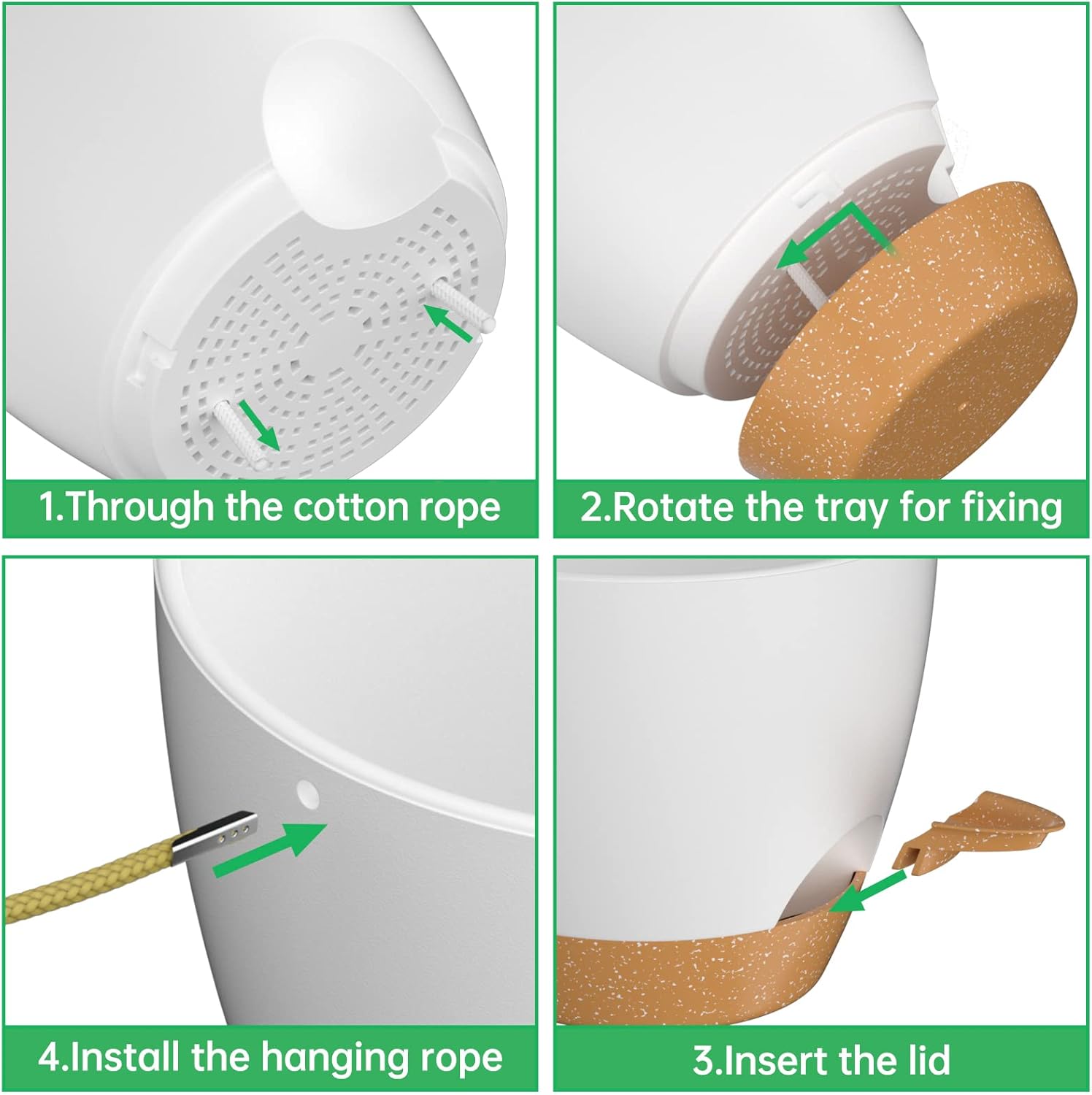 - Self Watering Hanging Planters: The hanging planters have an absorbent cotton rope and a removable reservoir. It ensures that your plants are not soaked in water and prevents root rot. The large capacity saucer provides enough water for your plants and the plant pots will keep them growing normally for 7 days, so you don't have to worry about your plants drying out even if you are travelling far away;