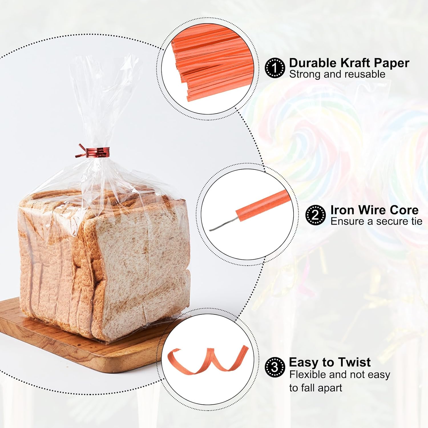- Material - Made of durable kraft paper with iron wire core, the bread twist ties are strong and reusable, which can be twisted flexibly and are not easy to fall apart.