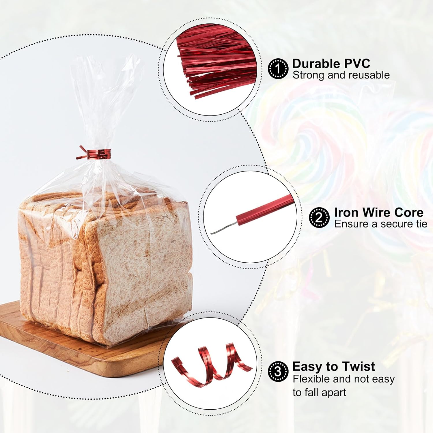 HARFINGTON 800pcs Bag Twist Ties 4.7" Reusable Plastic Metallic Twist Ties Wire Cable Ties for Party Bread Candy Cake, Red