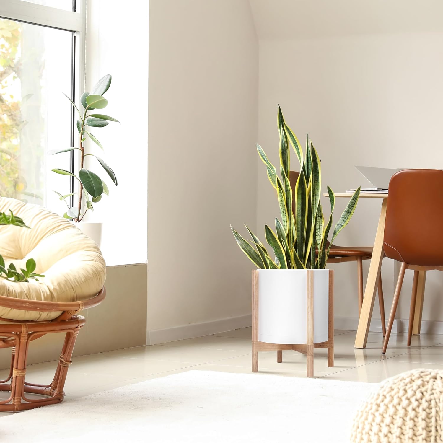 - Color : Matte White Pot + Natural Stand