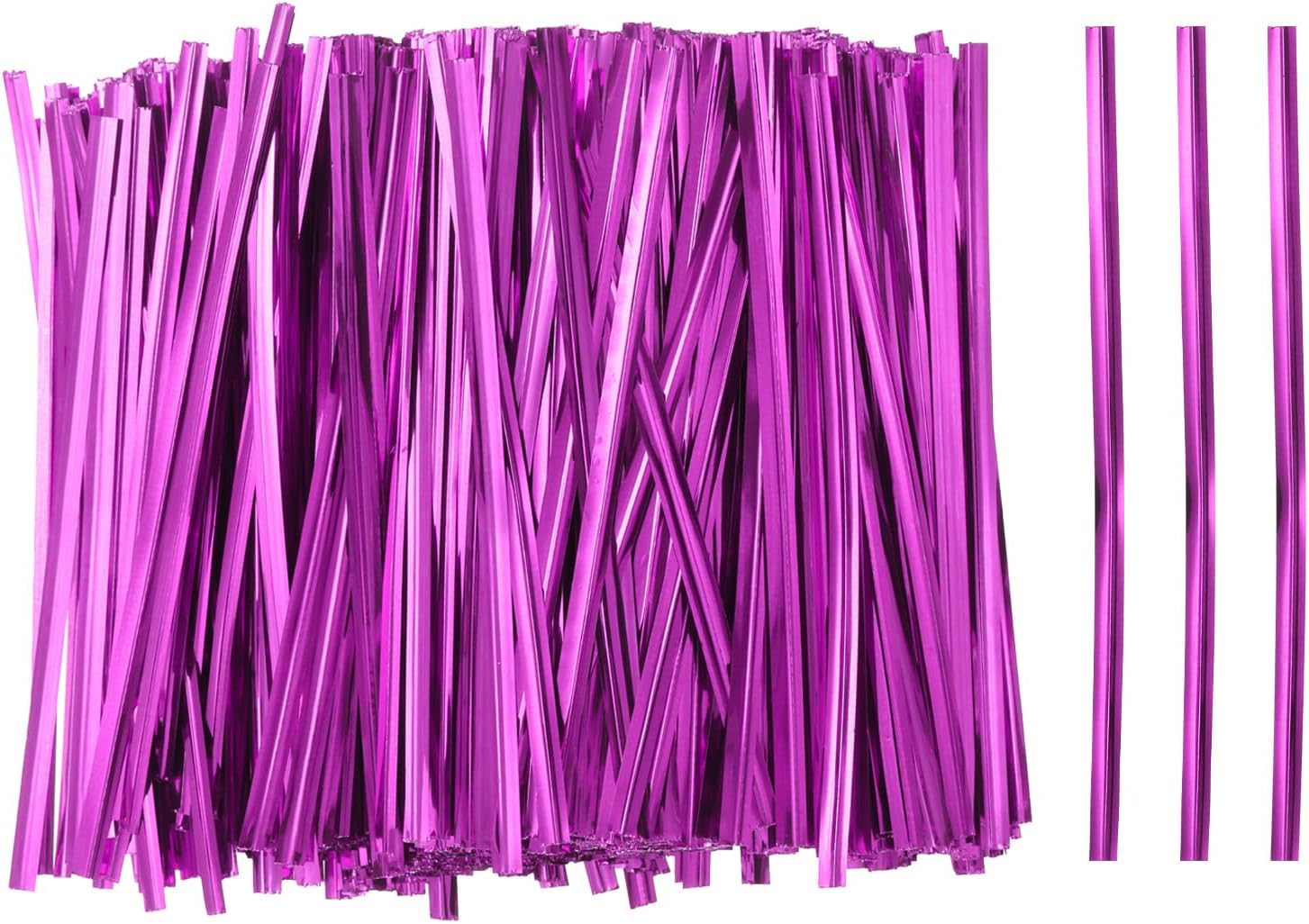 HARFINGTON 800pcs Bag Twist Ties 4" Reusable Plastic Metallic Twist Ties Wire Cable Ties for Party Bread Candy Cake, Pink