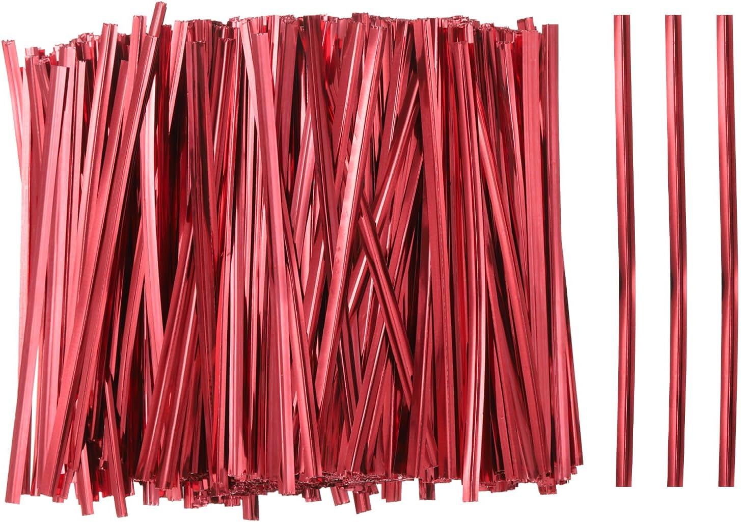 HARFINGTON 800pcs Bag Twist Ties 4" Reusable Plastic Metallic Twist Ties Wire Cable Ties for Party Bread Candy Cake, Red