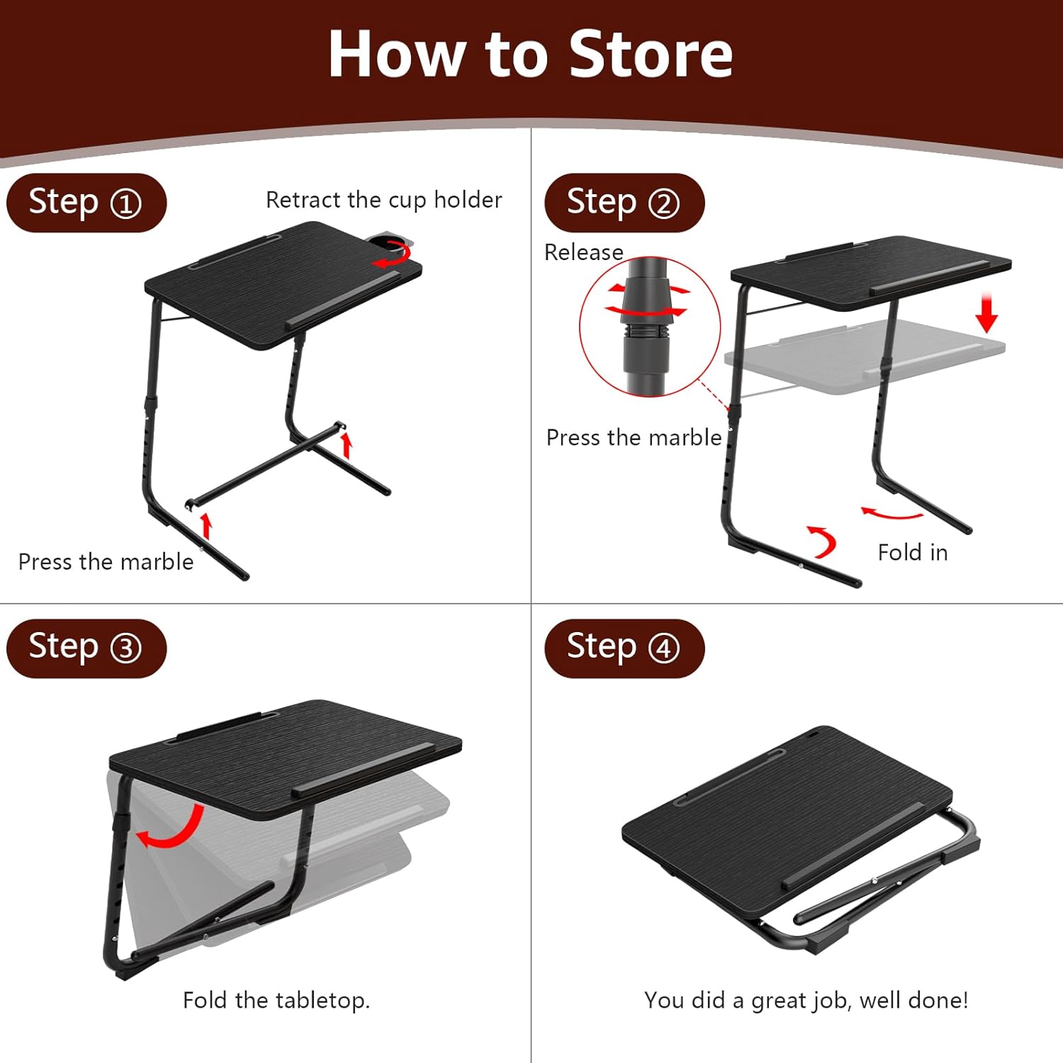 Adjustable TV Tray Black Dinner - Folding Trays for Eating On Couch Wooden Tables Mate Stand Foldable Desk with Cup Holder Portable