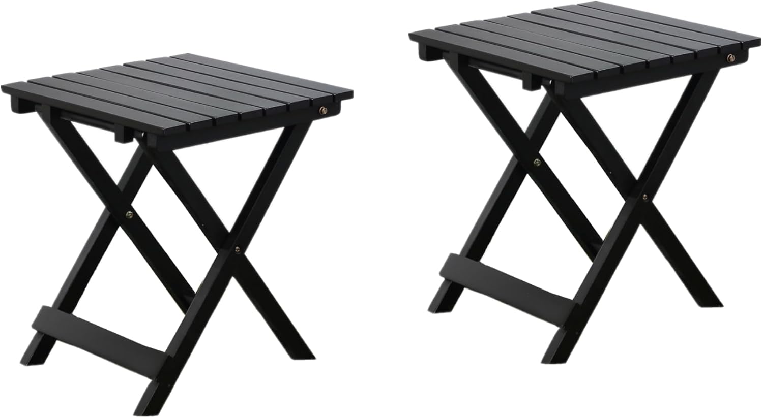 2 Pcs Small Folding Patio Side Table Outdoor Wood Wooden Small End Portable Plant Little Table for Garden Yard Porch Living Room Space Pool 15.4x15.4 x18.3 inch (Black)