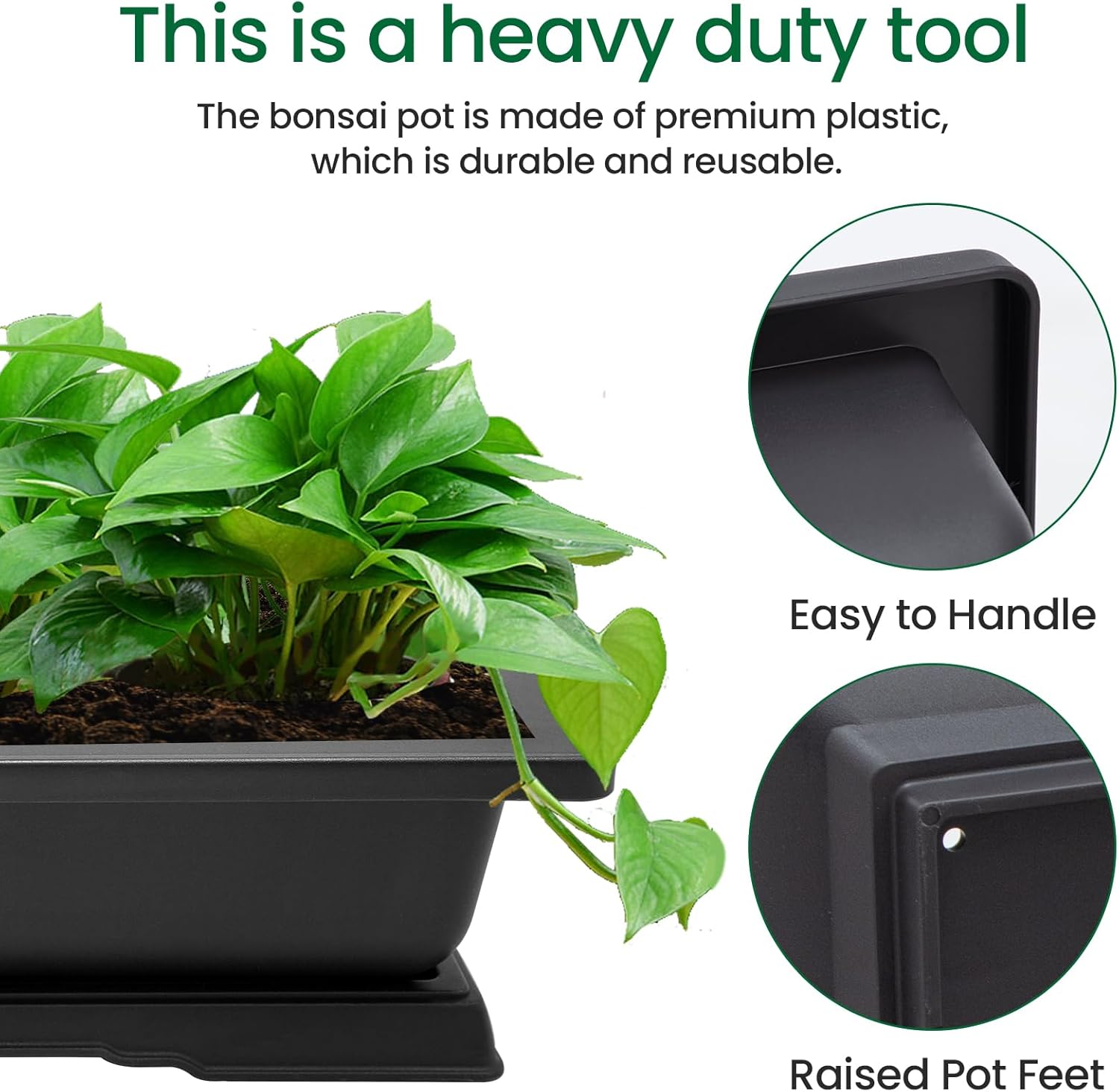 - 🌲 Premium Plastic Material - GROWNEER bonsai tree pots are made from durable plastic humidity trays that are lightweight yet sturdy. They are not easily deformed or cracked even if accidentally dropped. The reinforced edge design makes them easier to handle during movement. These bonsai pots can maintain their color in various weather conditions and do not fade like some other plastic pots.