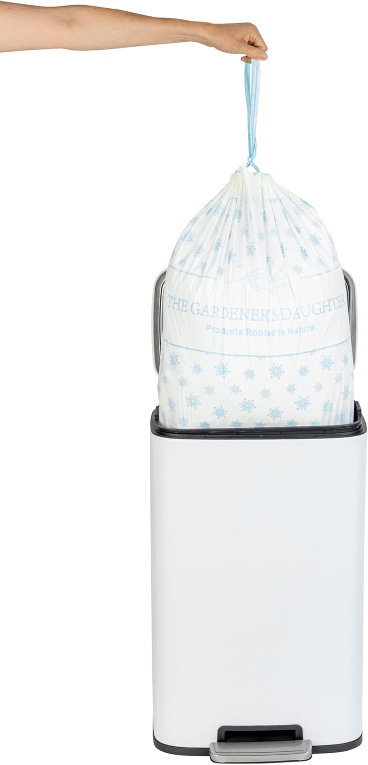 The Gardener's Daughter Compostable Trash Bags - 13 Gallon, 30 Count, Extra Strength, White, Drawstring Kitchen Waste Bag, BPI and TUV Certified, OK Home Compostable - (Winter’s Grace)