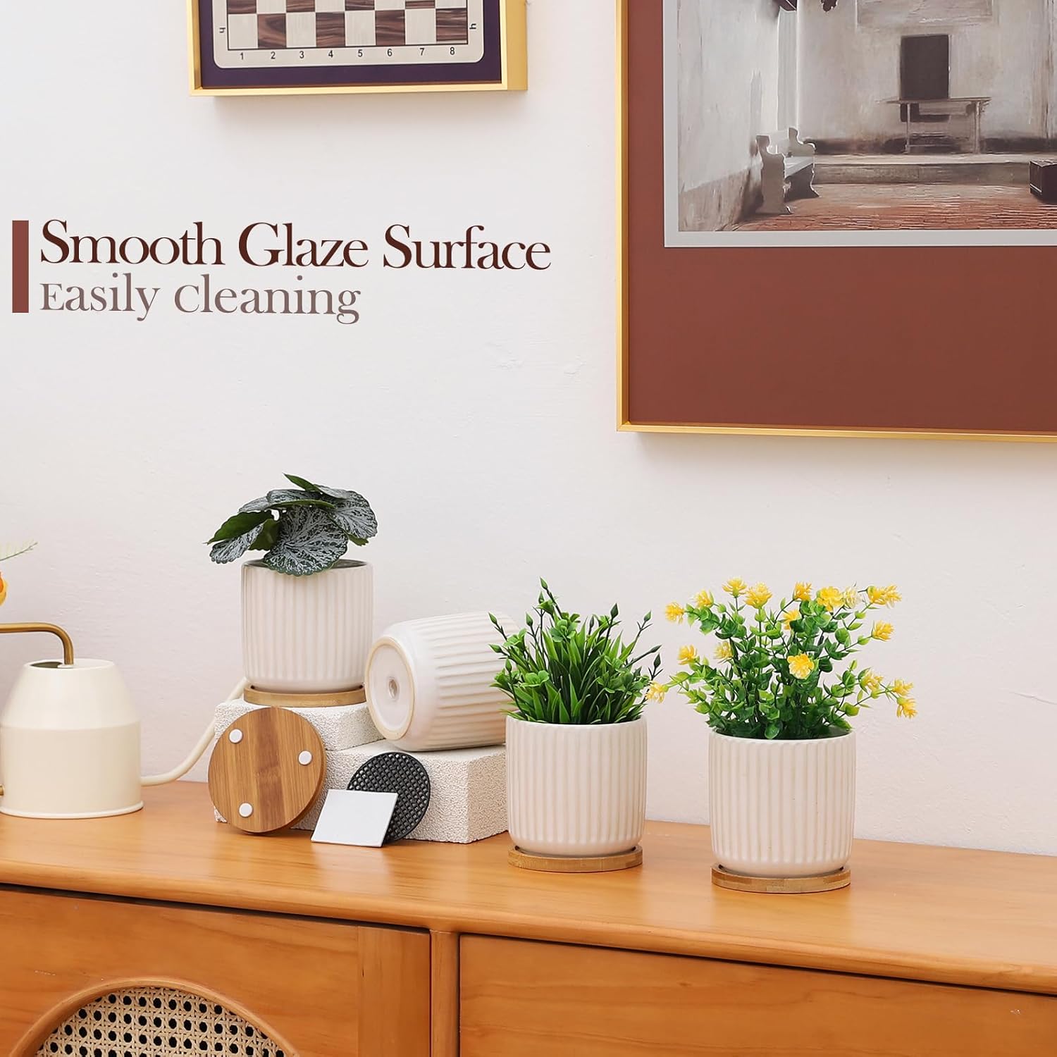- Simple Modern Style - White ceramic plant pots with stripe, suitable for growing potted plants indoor outdoor, Convenient for viewing at any time, and easy to take care of.