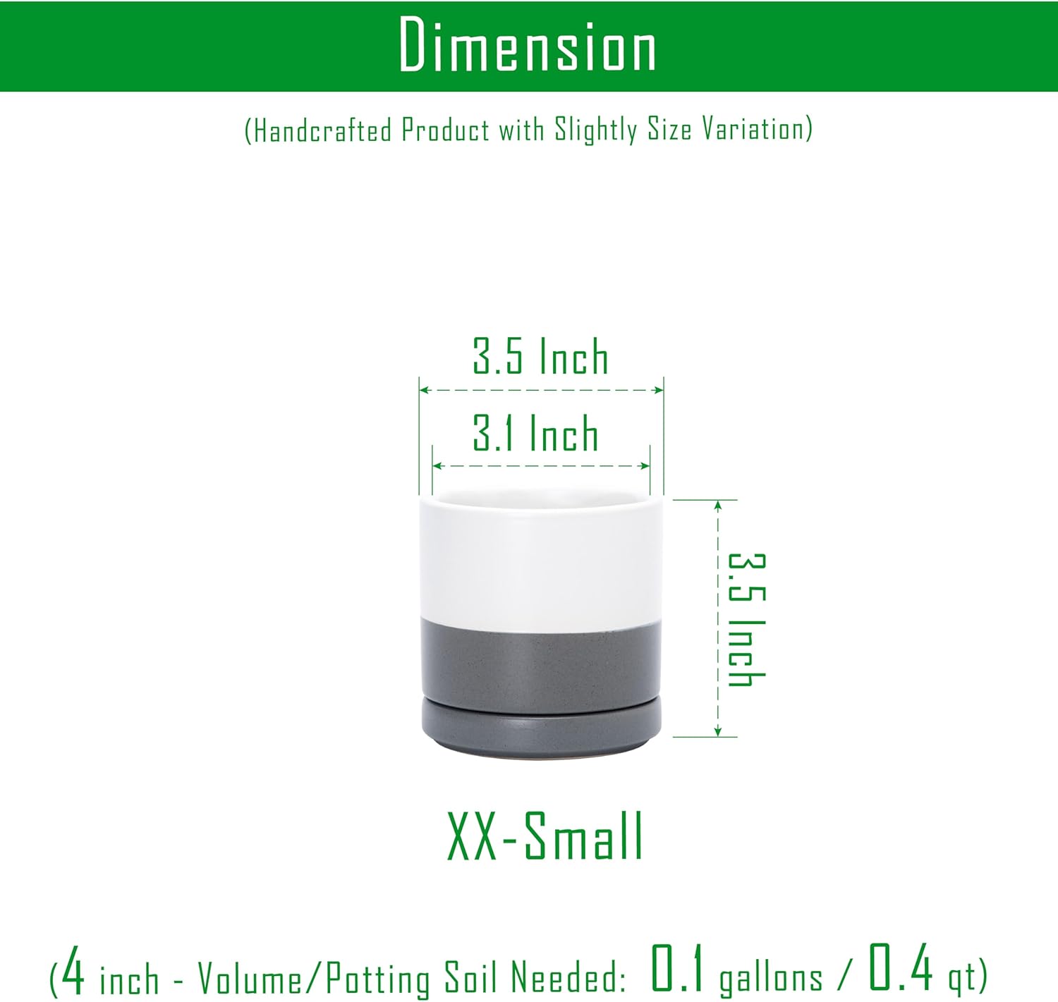 - XX-Small 3.5 Inch Planter Pot: 3.5" Diameter x 3.5" H, white/speckled grey color. Potting Soil Needed: 0.1 gallons / 0.4 qt.