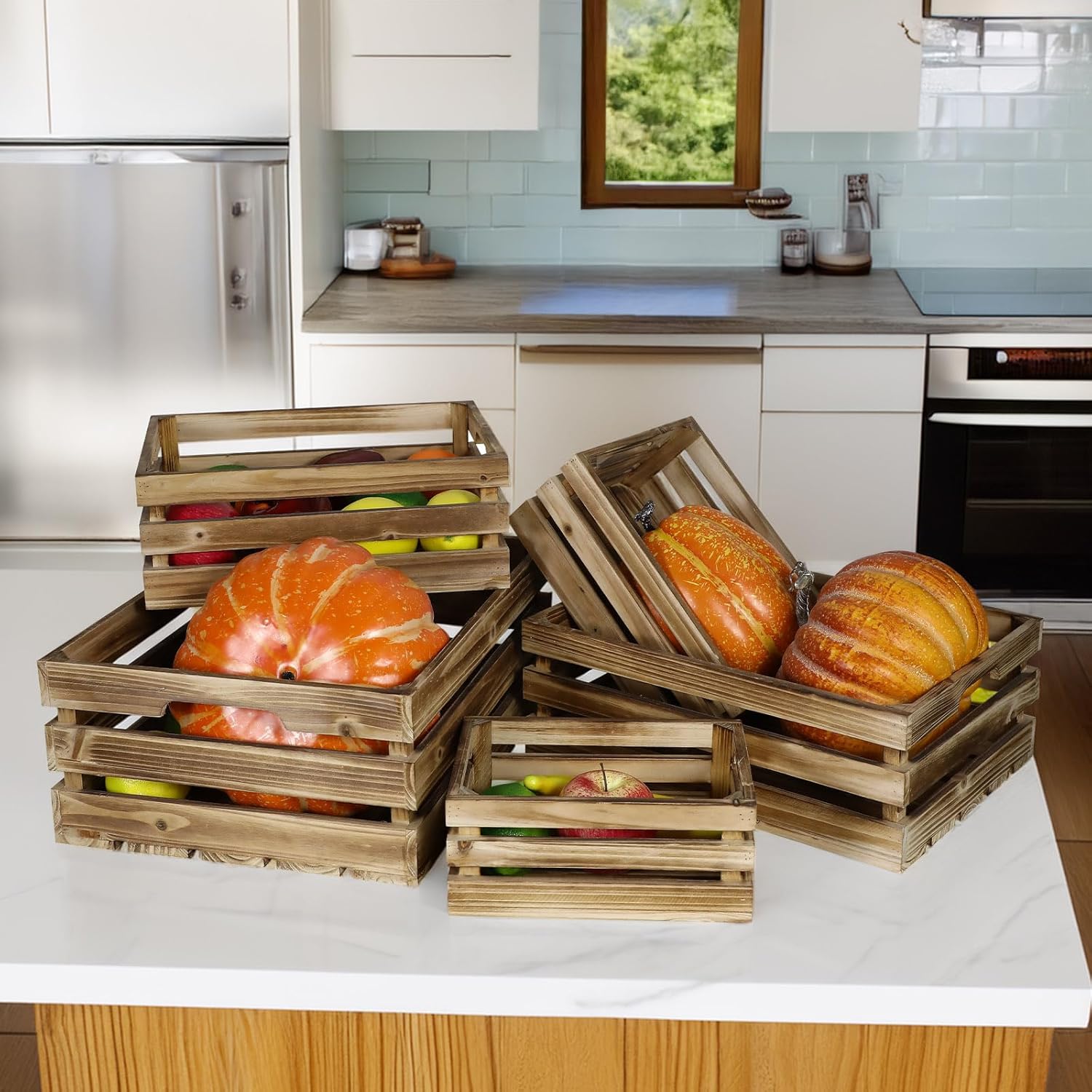 - Country Theme Decoration: The natural beauty of these wood crates for display adds a charming rustic touch to your space, meeting your requirements properly. Their spacious design offers ample storage and display options. Embrace your creativity and personalize them to match your rustic farmhouse style