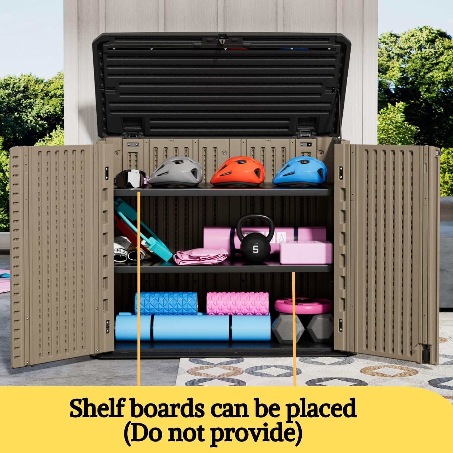 - Versatile Functionality: Includes a metal support bar for enhanced stability, allowing you to quickly and easily store items. The design also accommodates up to 2 additional shelves (sold separately), maximizing your outdoor storage options.