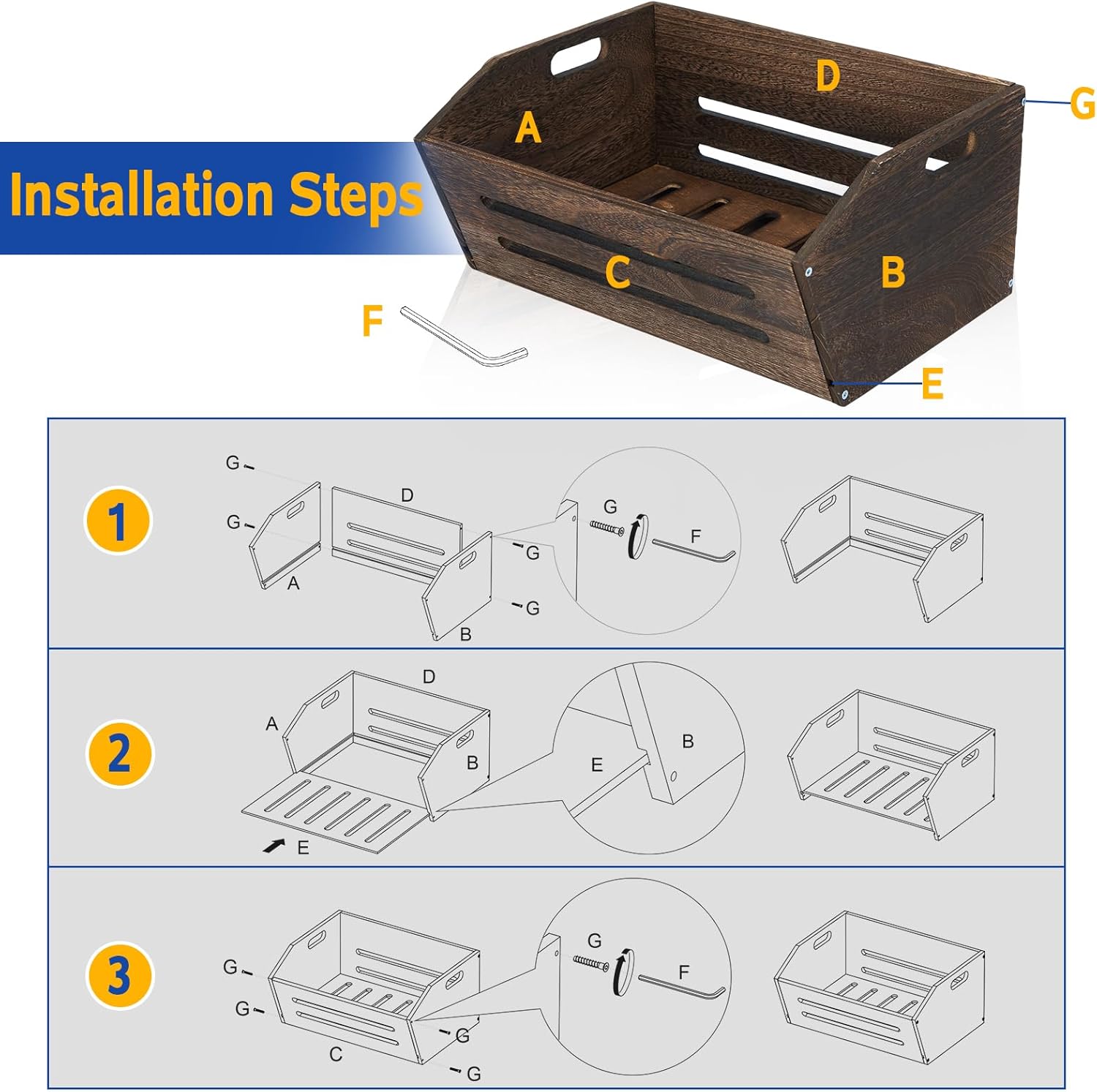 - Durability: Wooden crate box is made from sturdy wood, ensuring long-lasting use. They can hold items max 45lbs without warping or breaking.