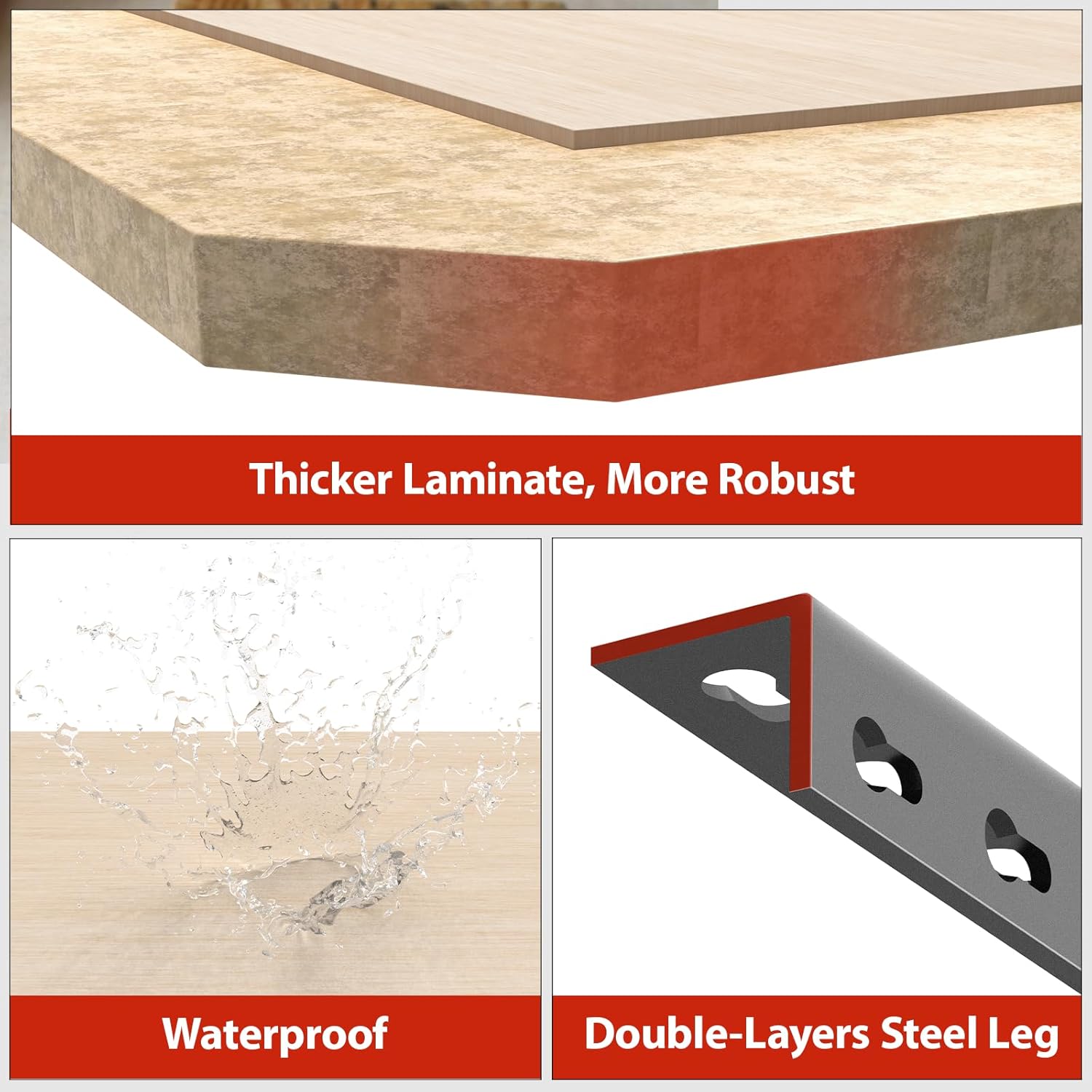 - ăDurable Constructionă: Heavy-duty laminated boards paired with thickened steel frames resist warping; scratch-proof surface withstands sharp tools; moisture-resistant design performs in humid kitchens or damp basements