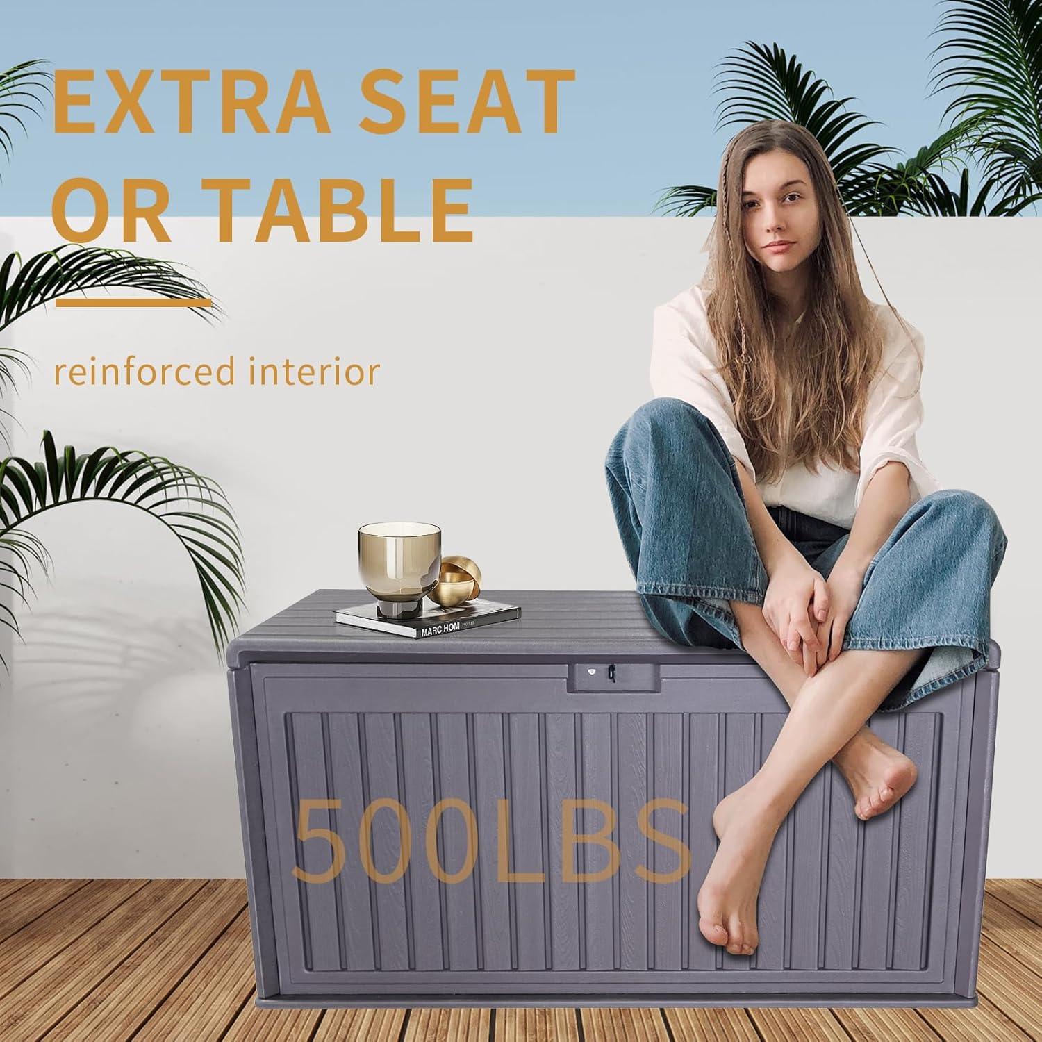 - Spacious 130 Gallon Deck Box Waterproof for Versatile Storage:Our expansive deck box waterproof provides ample space for all your indoor and outdoor storage needs, making it a pool storage box for large cushions, tools, sports equipment and pool supplies.