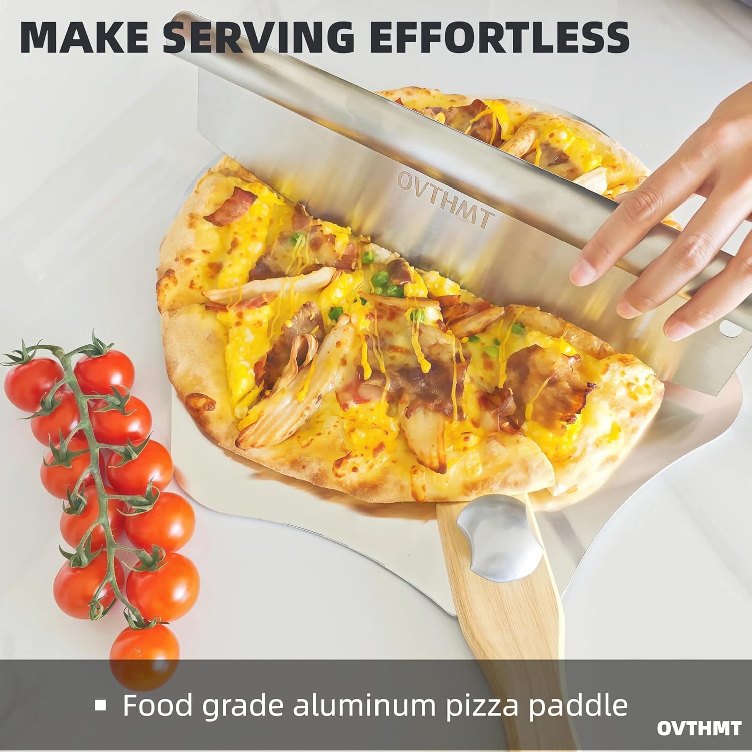 - HEALTHY AND DURABLE METAL PIZZA PEEL: Our pizza peel is made of high quality aluminum. Its size is 12 x 14 inch, and the wooden handle is 11.8 inches long. The pizza paddle features a smooth surface that allows pizzas to slide effortlessly onto pizza stone or pizza oven racks.