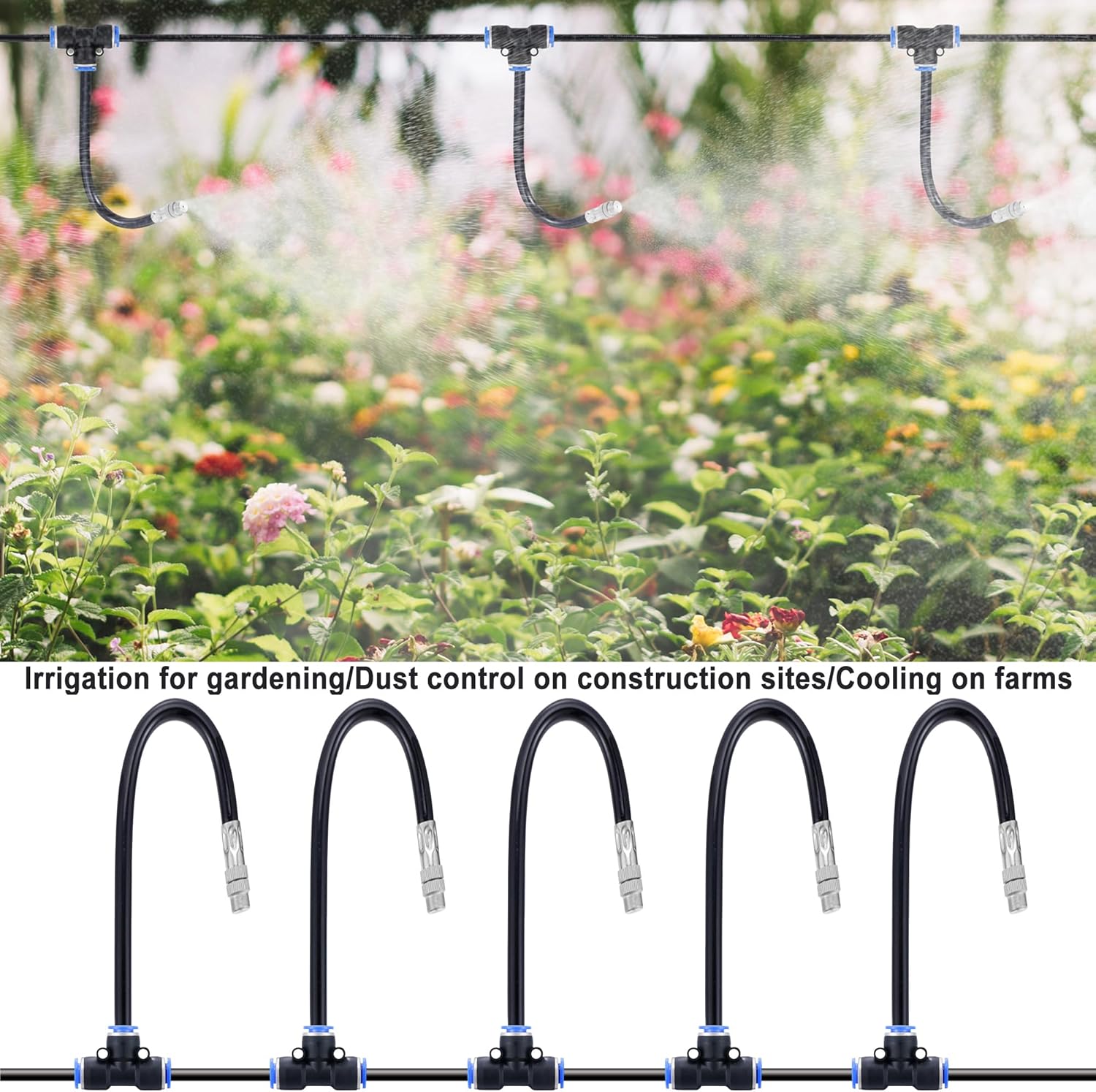 - 【Brass Misting Nozzles Tee with 8inch Built in Hose】: Made of premium brass, Mornajina Brass Misting Nozzles Tee with 8inch built in hose can be bent and fixed at 360 degrees, very convenient to adjust the place to be sprayed and specify the direction. And these misting nozzle tee thread sprayer with replacement heads equipped with leak proof self sealing o ring, no tape or sealant is required.