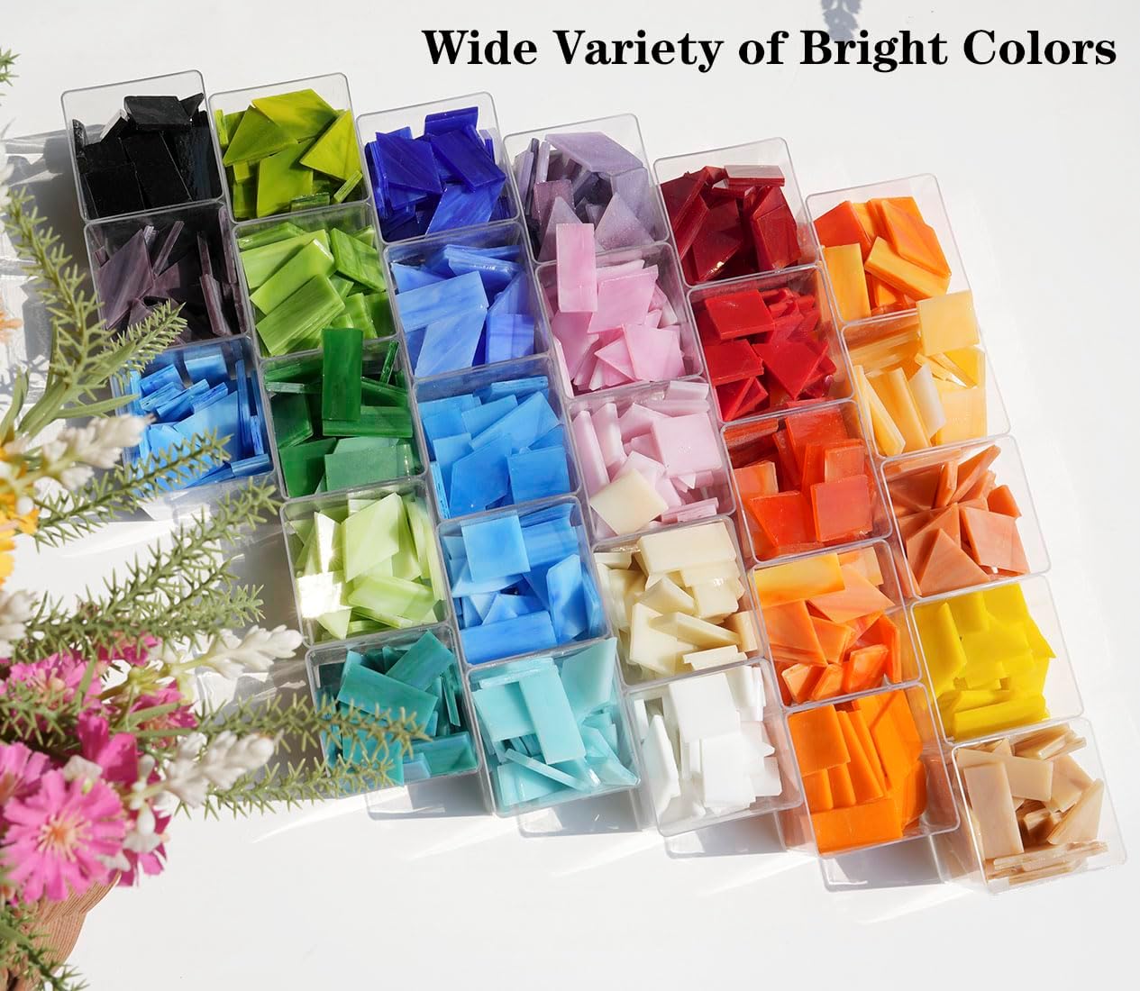 - NO DULL COLORS—JUST BRIGHT & BOLD: Every tile is carefully crafted with vivid, vibrant hues, making sure your artwork shines with radiant colors. No dull tones, only brilliant, eye-catching shades to bring your glass designs to life