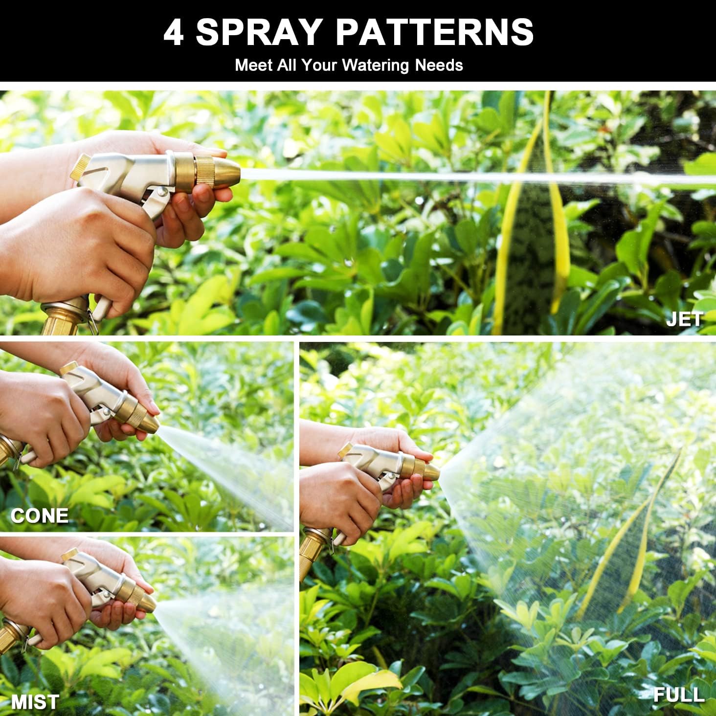 ESOW Heavy Duty Metal Garden Hose Nozzle, High Pressure Water Hose Nozzle with 4 Spray Patterns Rotating, Ideal for Outdoor Lawn & Garden Watering, Car & Pet Washing, Silver