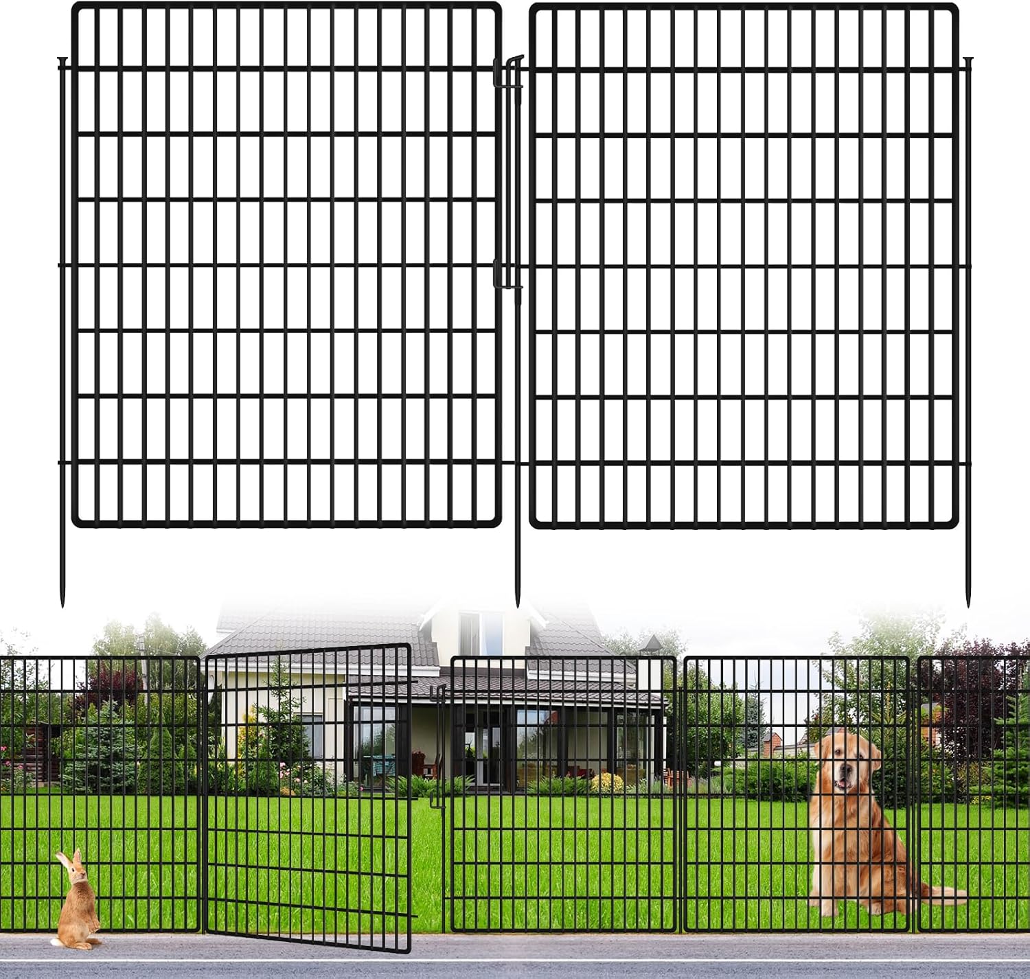 - Multipurpose Decorative Fence --- The metal dog fence panels features a classic black design that perfectly complements any garden or patio style. This type of fencing is ideal for defining garden boundaries, creating safe play areas and confining your pets in a stylish and practical way. It can also be used decoratively to enhance the look of walkways, backyard decorations and garden borders.