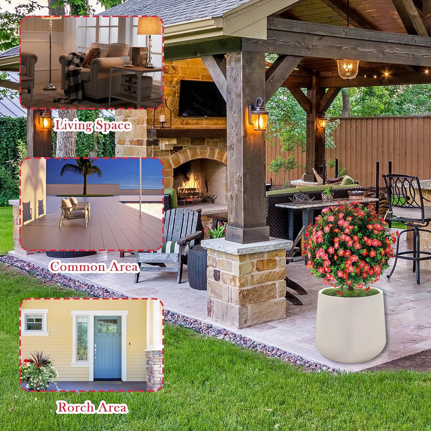 - ăVibrant Artificial Plant DecorăElevate your home's visual appeal with our faux boxwood topiary ball trees with red blossoms. And each realistic bush comes with a sturdy black ground stake, enabling you to position it in ornamental containers or insert it directly into the earth. Its sophisticated appearance brings a aature's vitality to any environment.
