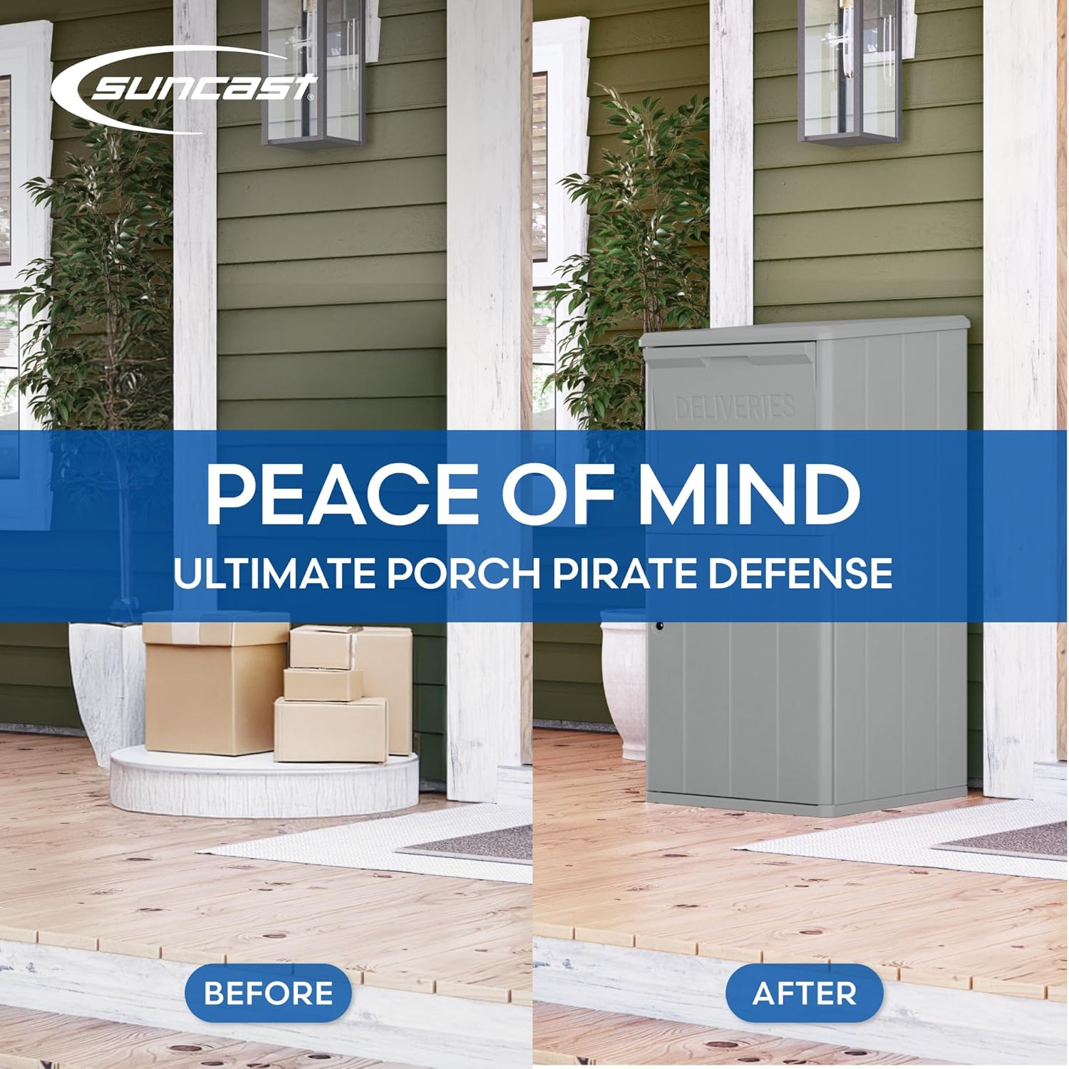 Suncast 33.5-Gallon Capacity Package Delivery Box, Parcel Drop Box with Lock, Weather Resistant Outdoor Storage Solution for Secure Package Deliveries, Made in USA