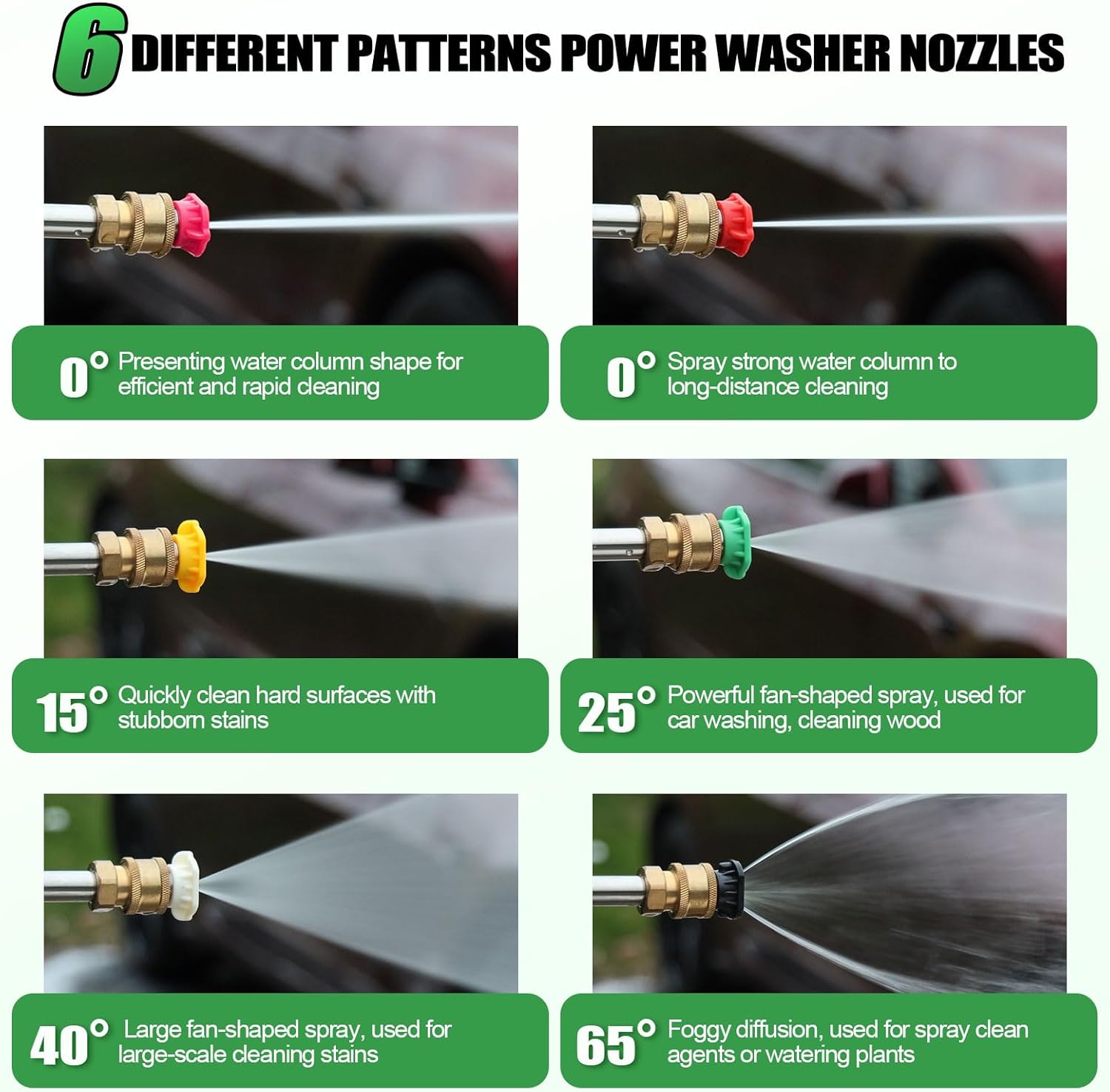 - Widely Applicable & Excellent In Effect: Pressure washer wand suitable for various scenarios such as car cleaning, house exterior wall cleaning, drainage ditch cleaning, roof cleaning, window cleaning, sewer pipe cleaning, etc., with excellent cleaning effect, meeting the diverse needs of users